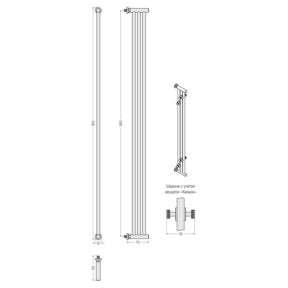 Полотенцесушитель водяной Сунержа Хорда 15-4124-1800 180х19 см