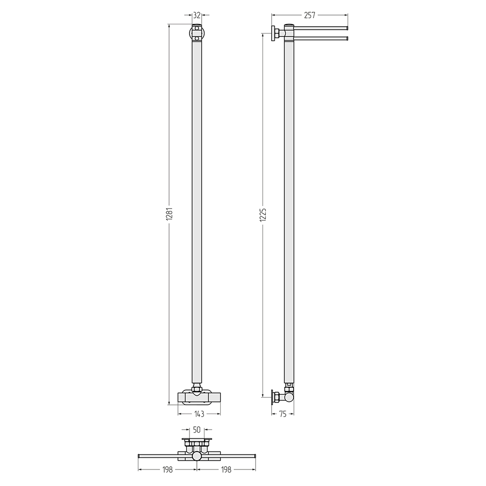 - Размер полотенцесушителя 14,3х128,1 см