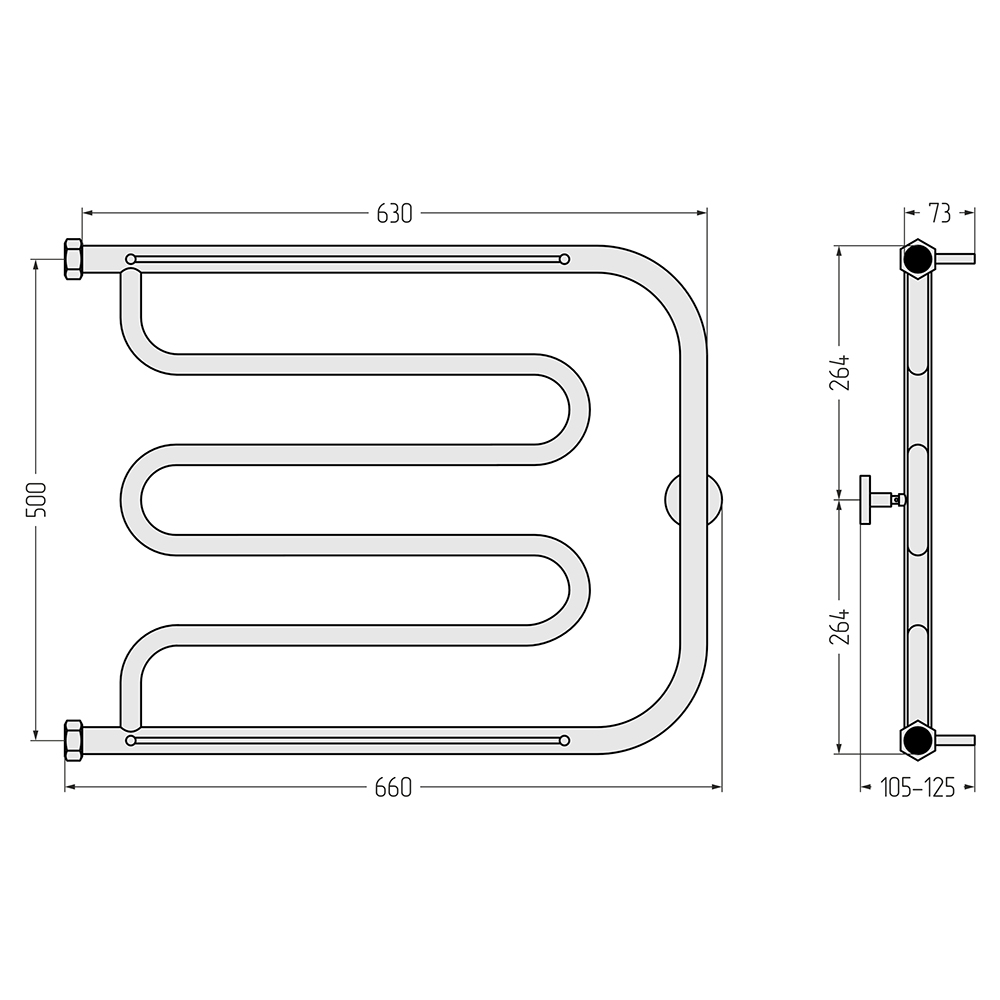 - Размер полотенцесушителя 66х53,6 см