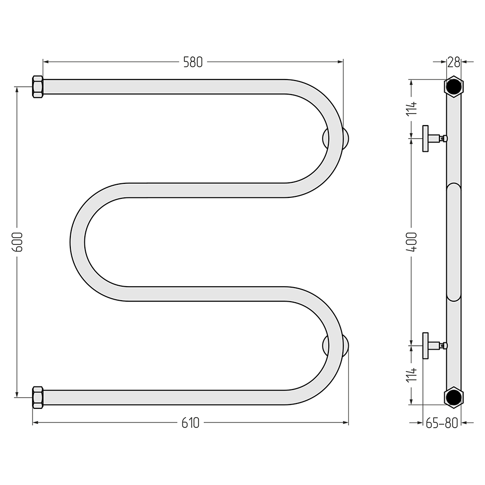 Оснащение : Полотенцесушитель, несъёмные накидные гайки для подключения, телескопический кронштейн, комплект прокладок, шестигранный ключ, дюбели и саморезы