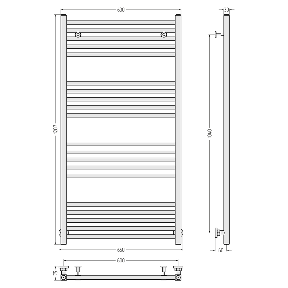 - Размер полотенцесушителя 65х120,7 см