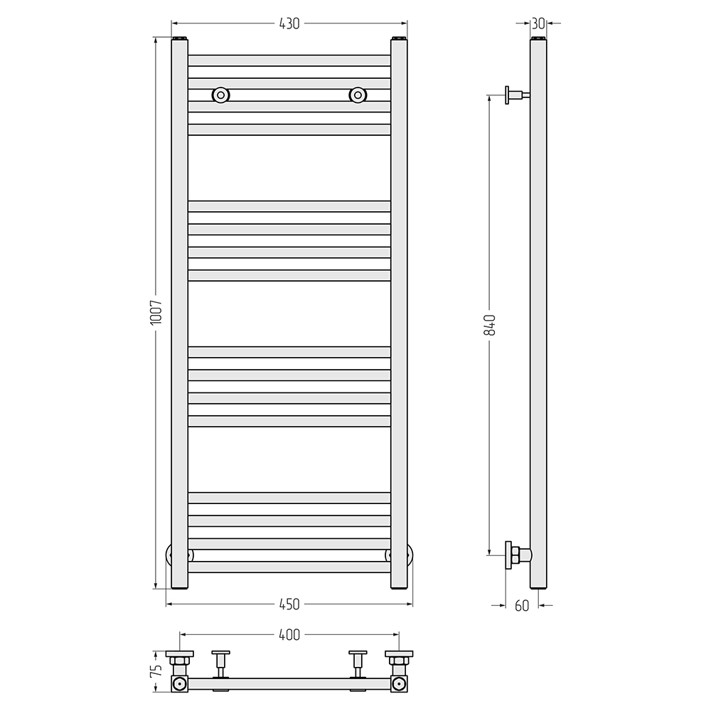 - Размер полотенцесушителя 43х100,7 см