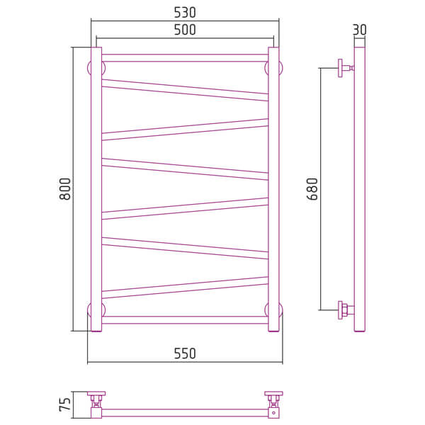 - Размер полотенцесушителя 55х80 см