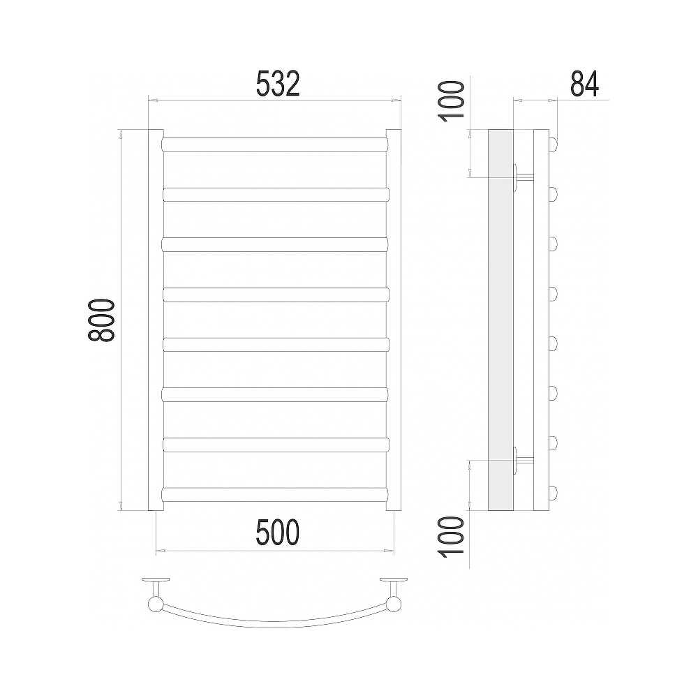 - Размер полотенцесушителя 53,2х80 см