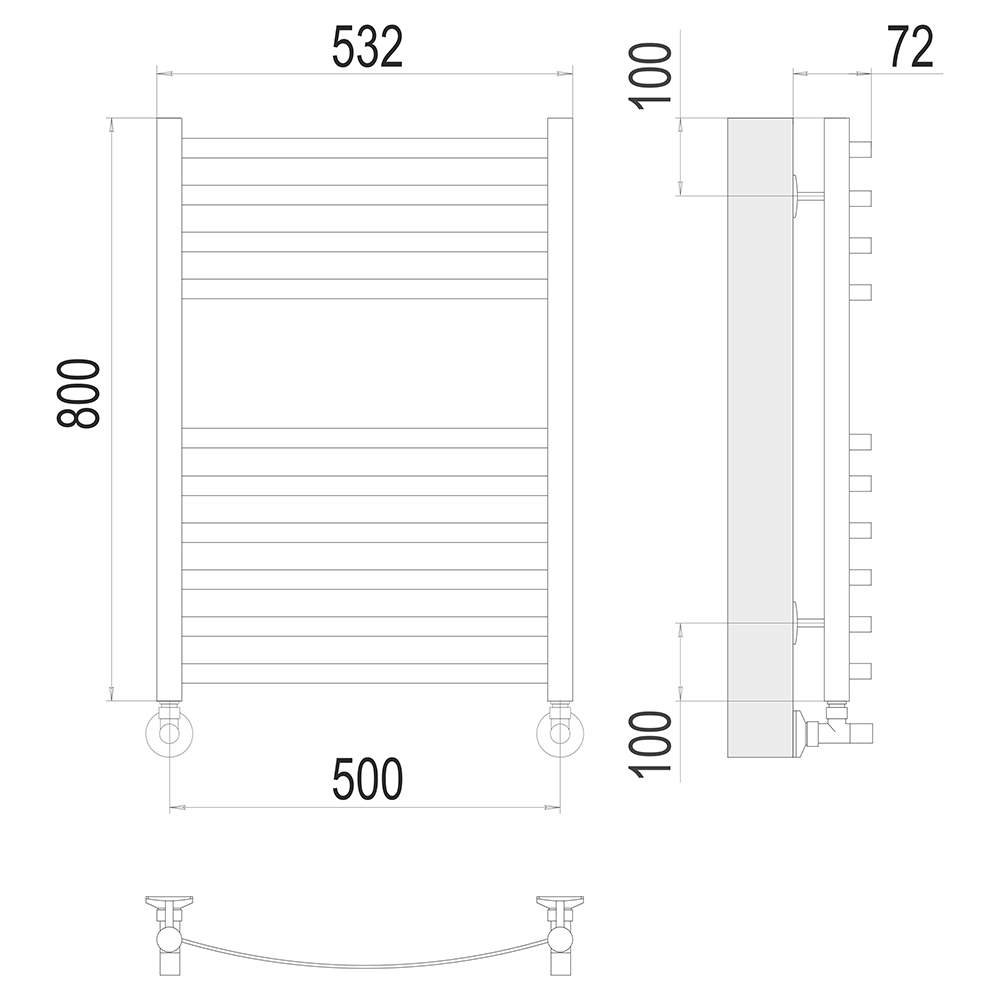 Оснащение : Полотенцесушитель,заглушка,кран маевского,телескопическое крепление ,эксцентрик,отражатель,угловое соединение гхш 3/4 на 1/2,вентиль,