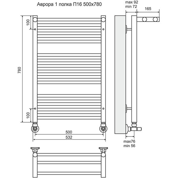 - Размер полотенцесушителя 53,2х78 см