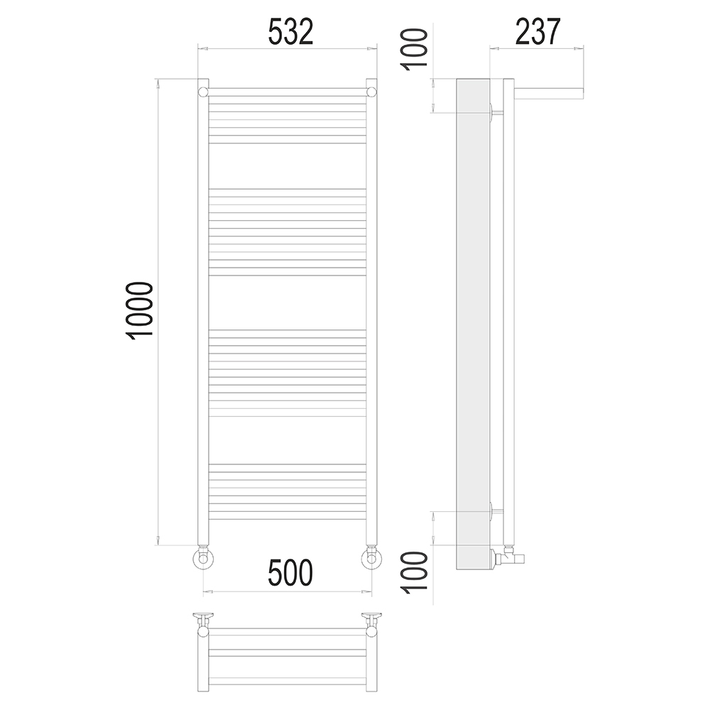 - Размер полотенцесушителя 100х53,2 см