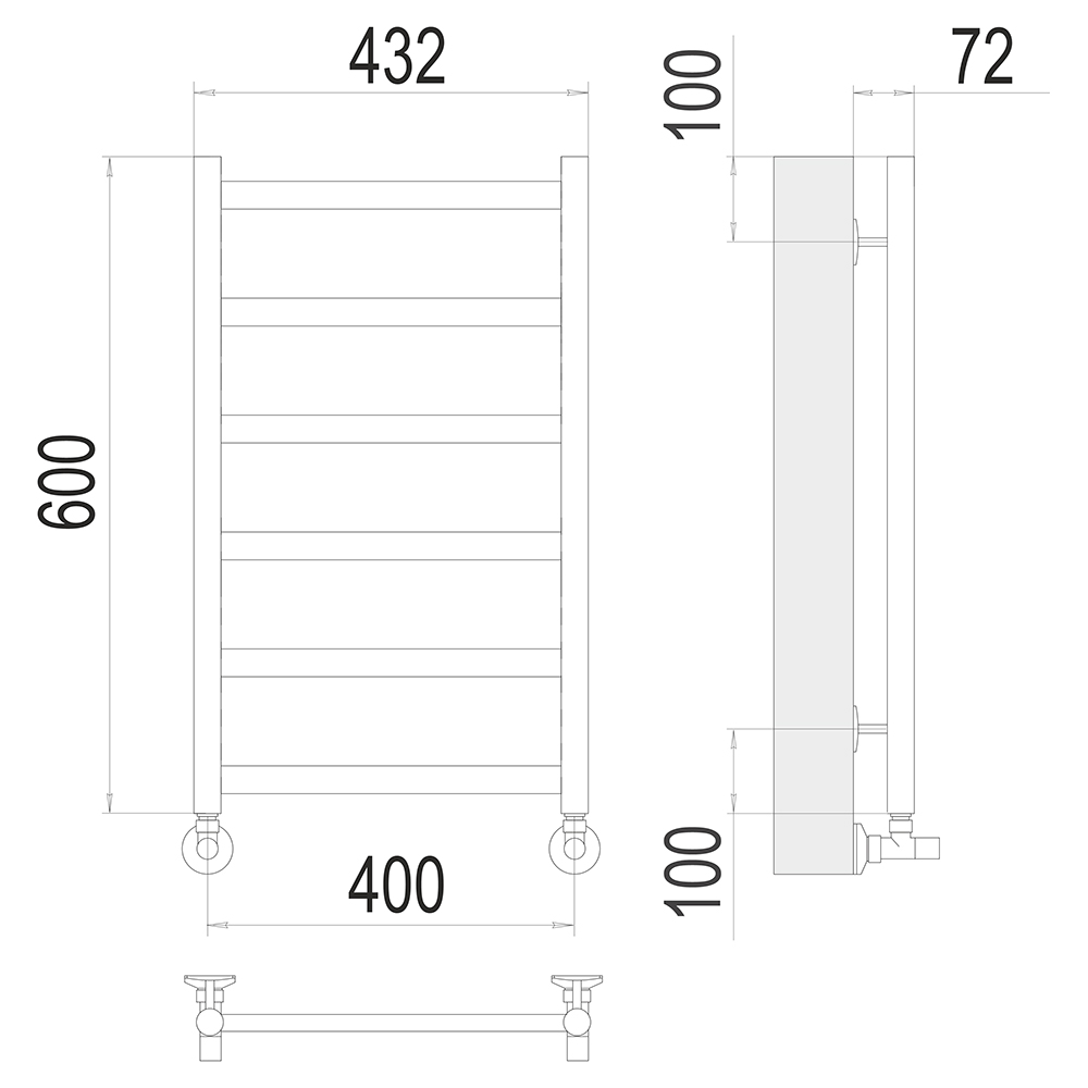 - Размер полотенцесушителя 43,2х60 см