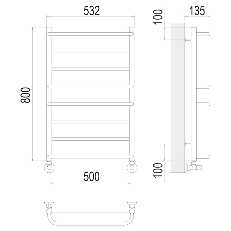 - Размер полотенцесушителя 53,2х80 см