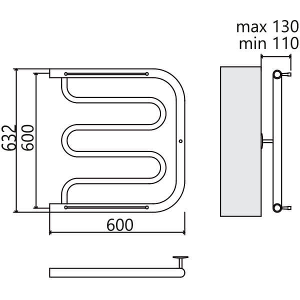 - Размер полотенцесушителя 60х63,2 см