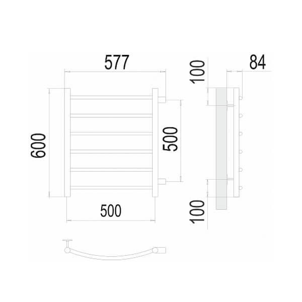- Размер полотенцесушителя 57,7х60 см
