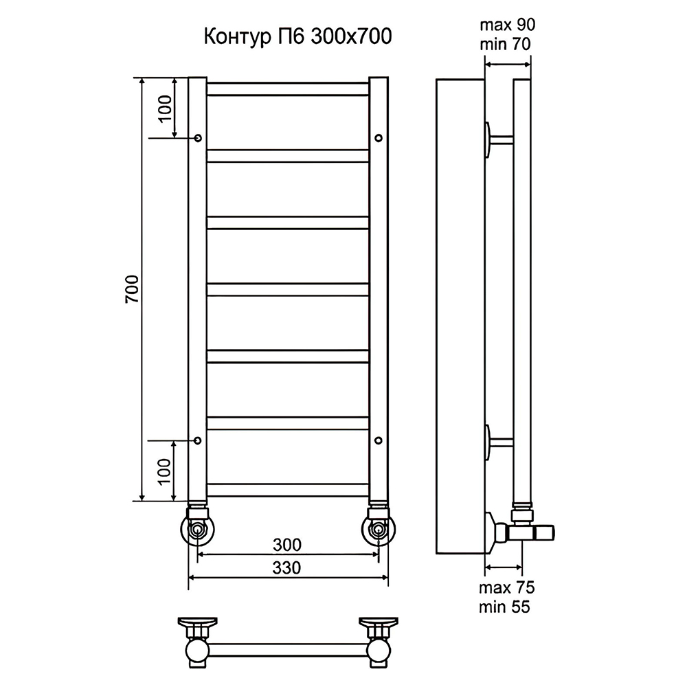 Полотенцесушитель водяной Terminus Контур П6 4660059582429 30х70 см