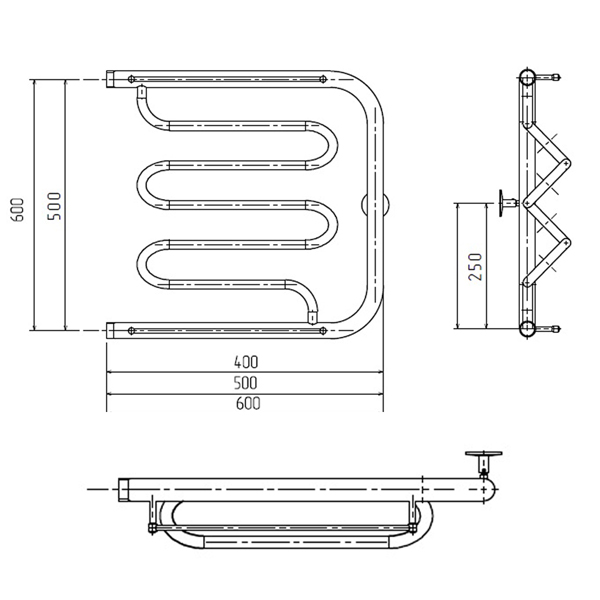 - Размер полотенцесушителя 60х53,2 см