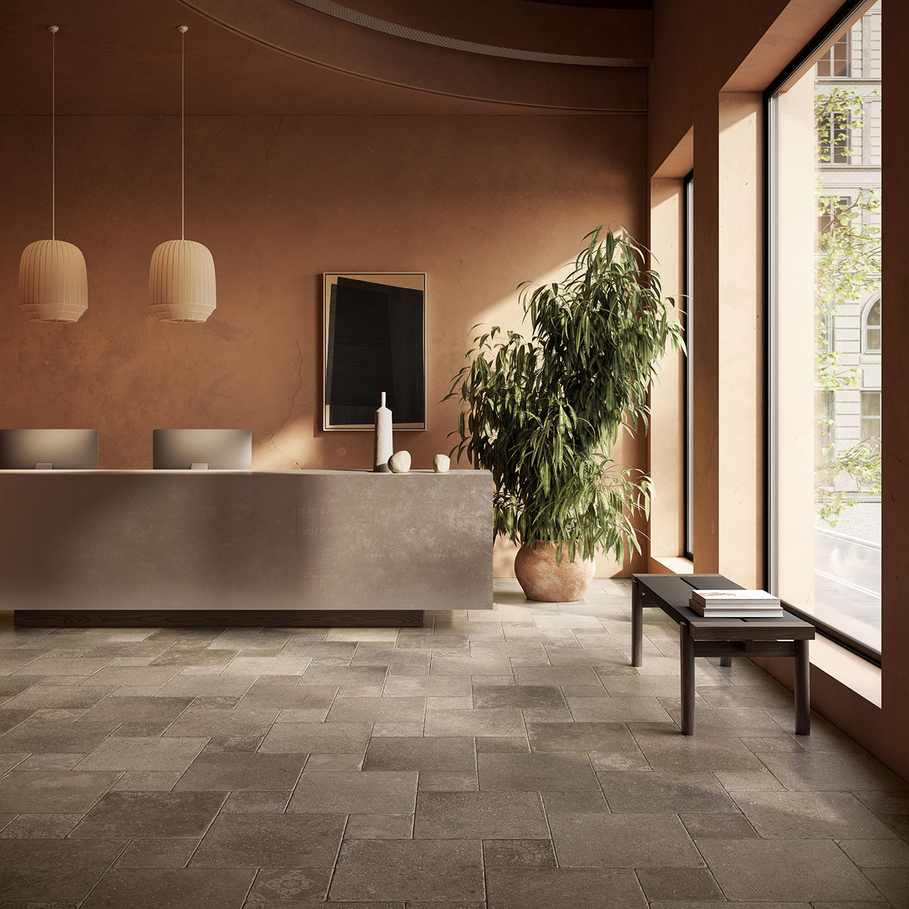 Коллекция Pomposa, вдохновленная камнем, найденным в одноименной церкви в Модене (Италия), сочетает в себе прошлое и настоящее, создавая настроение, которое по-новому интерпретирует цвета и текстуры оригинального материала.