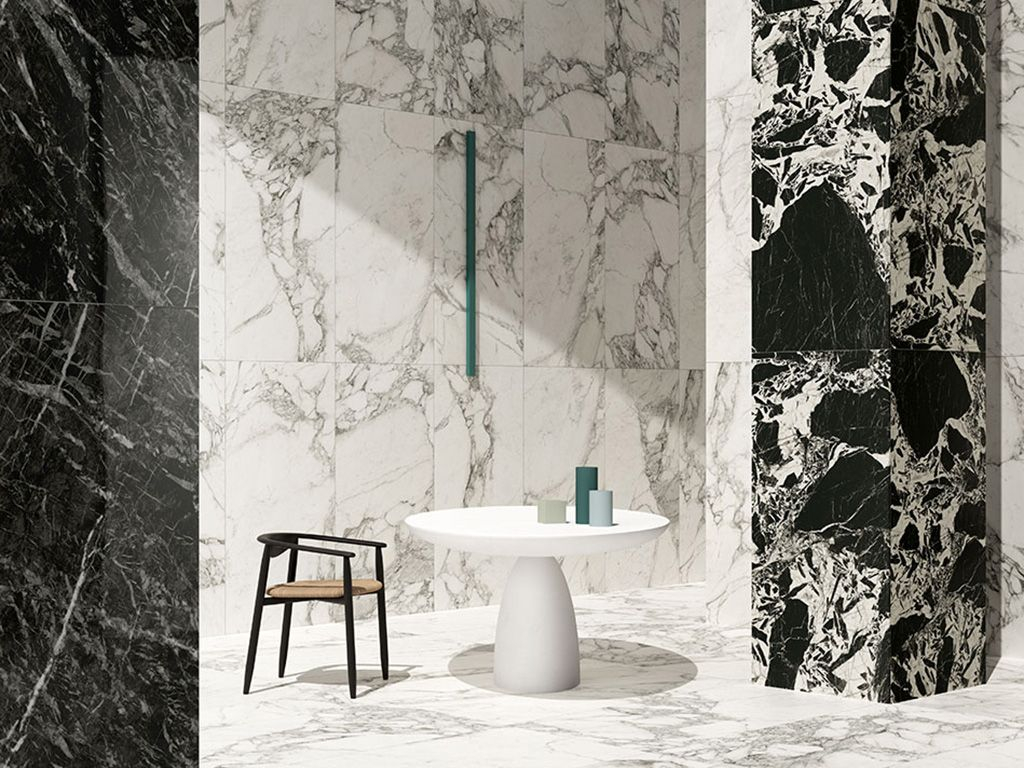 Престижная фарфоровая плитка под мрамор была создана для того, чтобы предложить сочетания светлых и тёмных цветов, как тёплых, так и холодных. Сочетающиеся поверхности создают приятные контрасты, но могут использоваться и по отдельности.