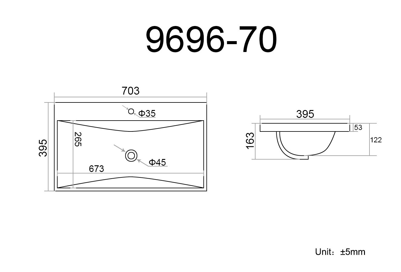 Раковина Vigo керамическая модель 9696-70 70x39.3 см