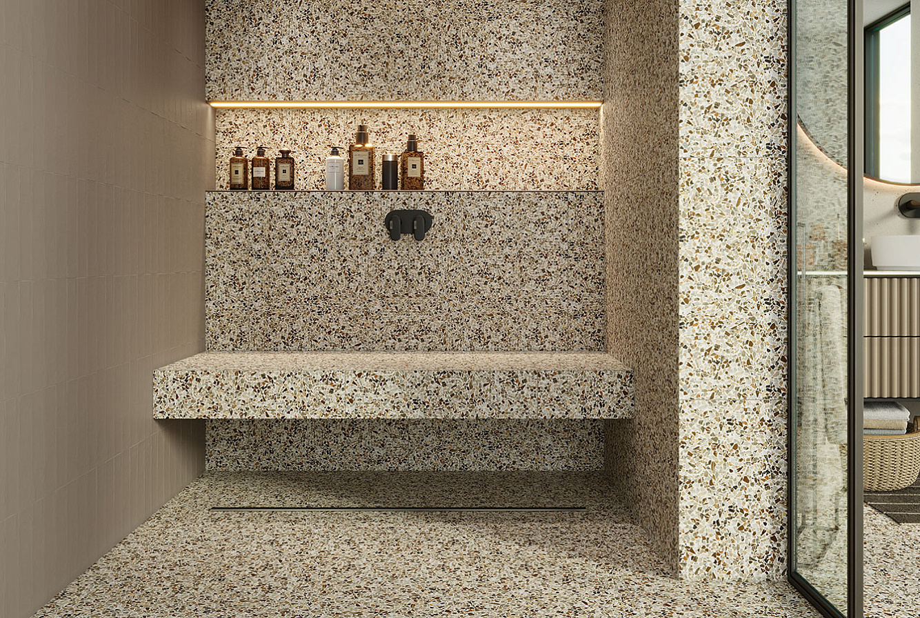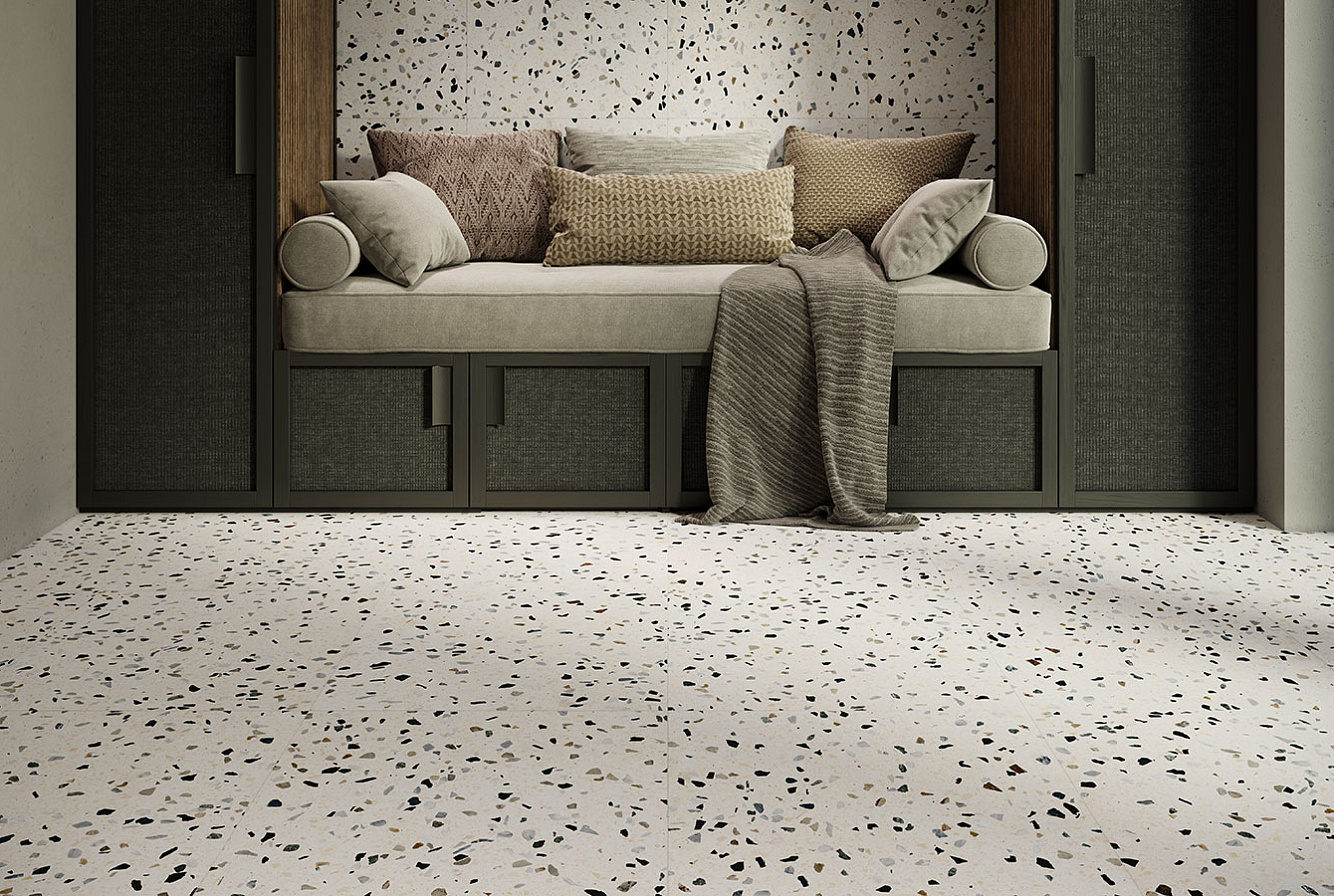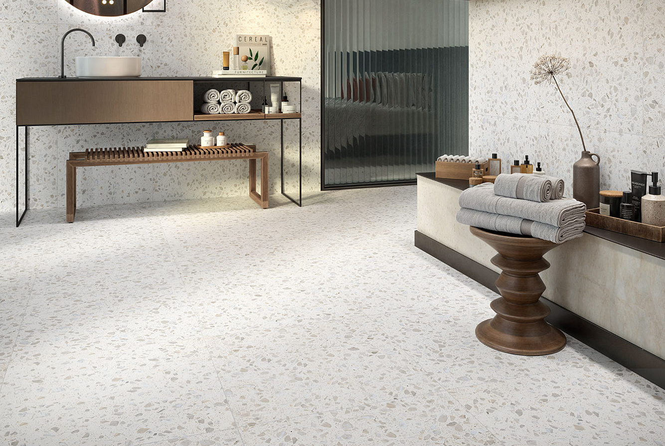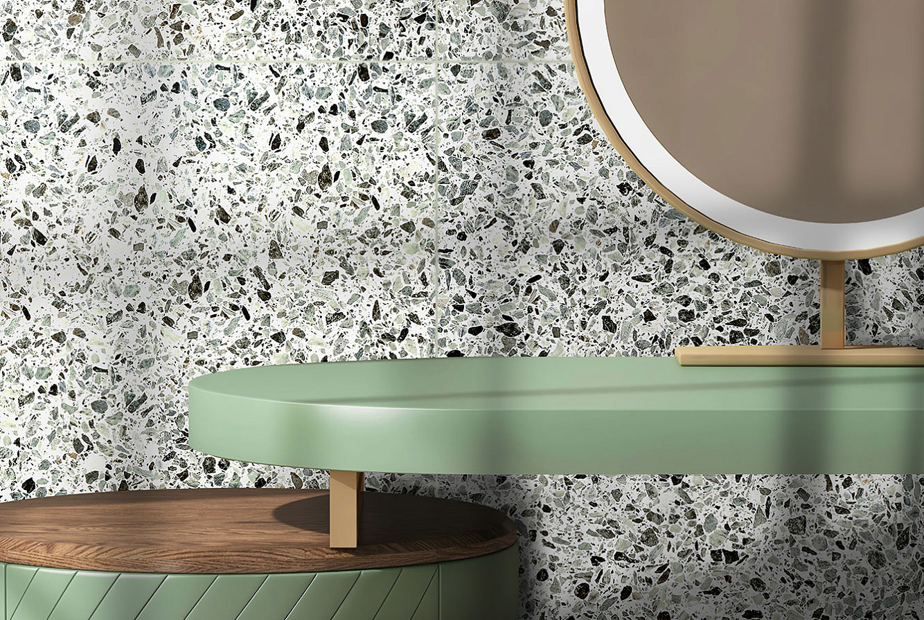 Насладитесь неподвластной времени красотой терраццо с коллекцией RE-BEL – настоящим сочетанием традиций и инноваций.