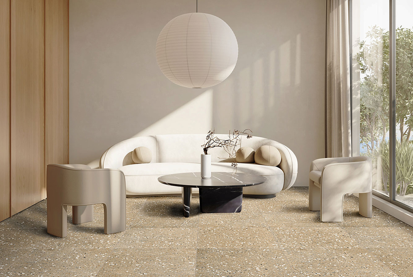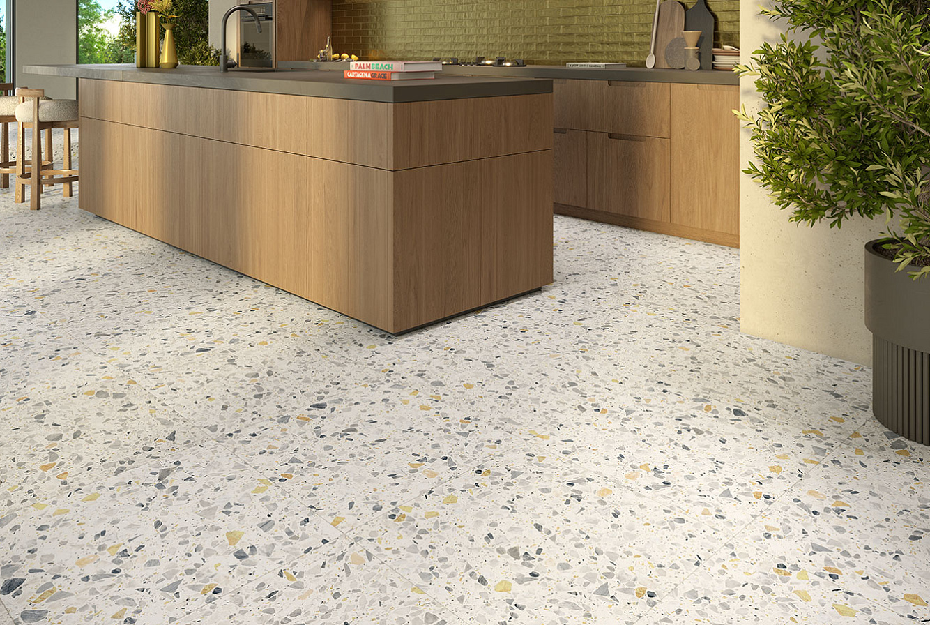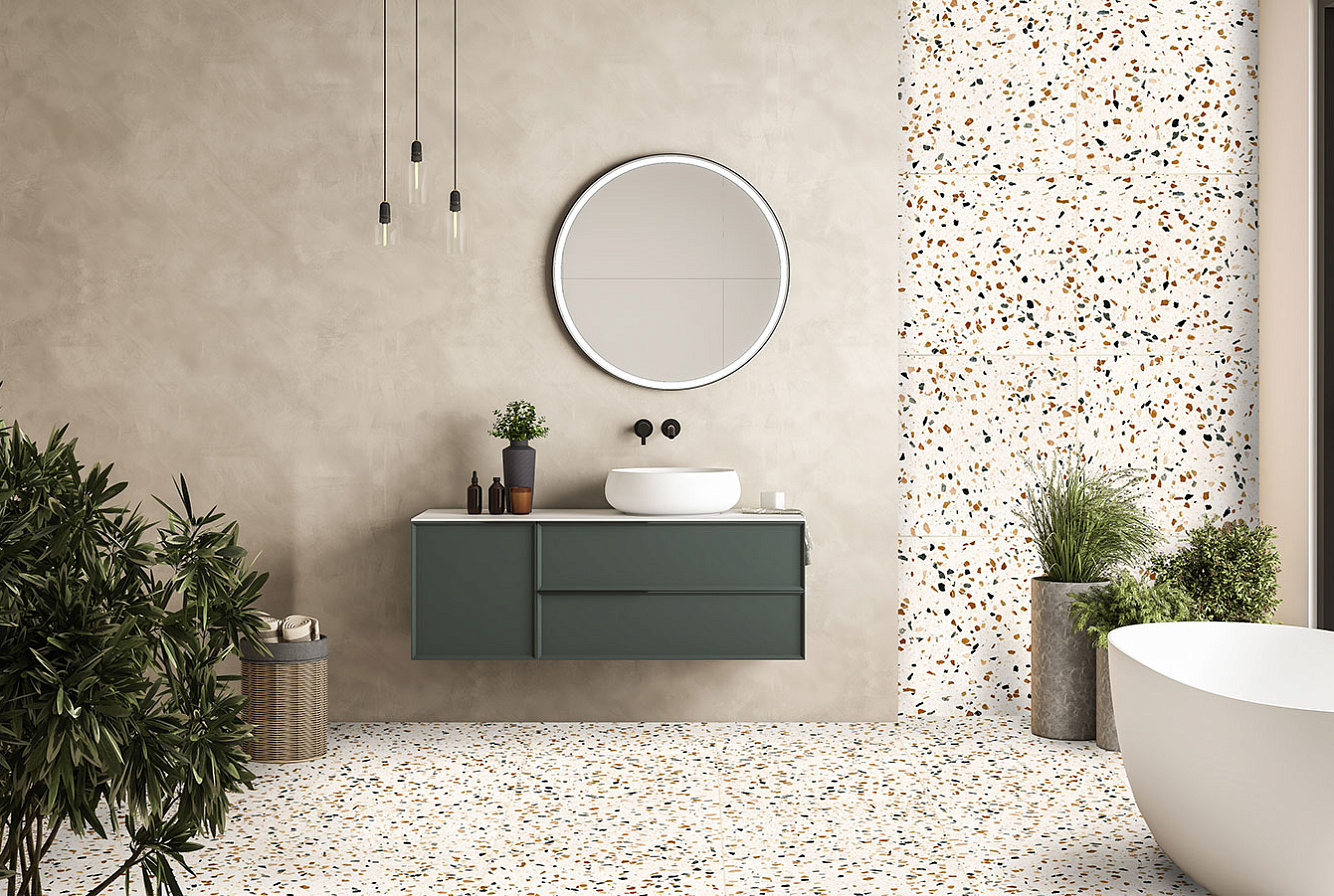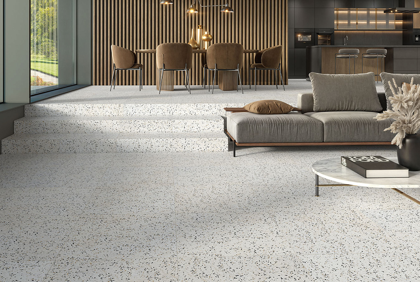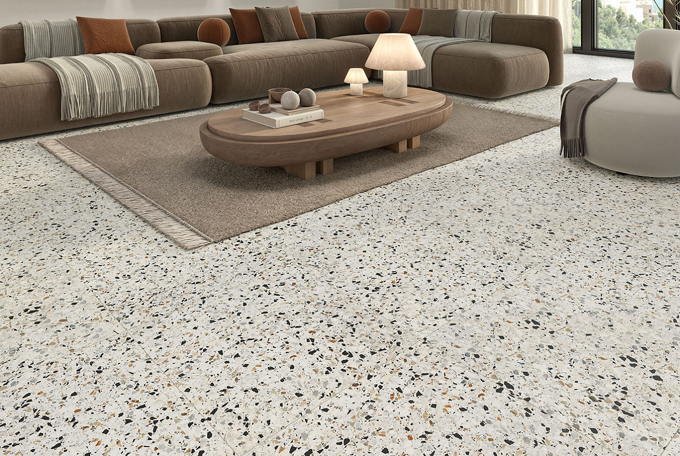 Насладитесь неподвластной времени красотой терраццо с коллекцией RE-BEL – настоящим сочетанием традиций и инноваций.