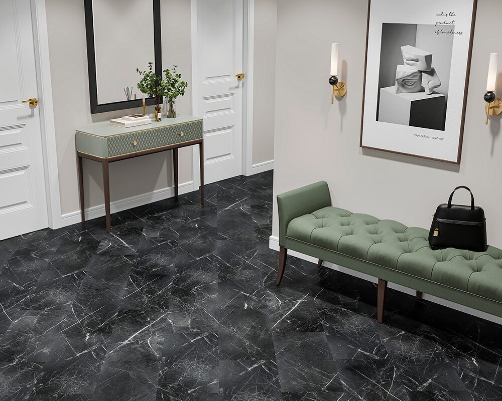 Alta Step Roca – коллекция SPC-ламината под плитку, имитирующая природный мрамор. Декоры представлены в оттенках от белого камня до черного, что позволяет органично вписать в интерьеры различных стилистик и цветов.