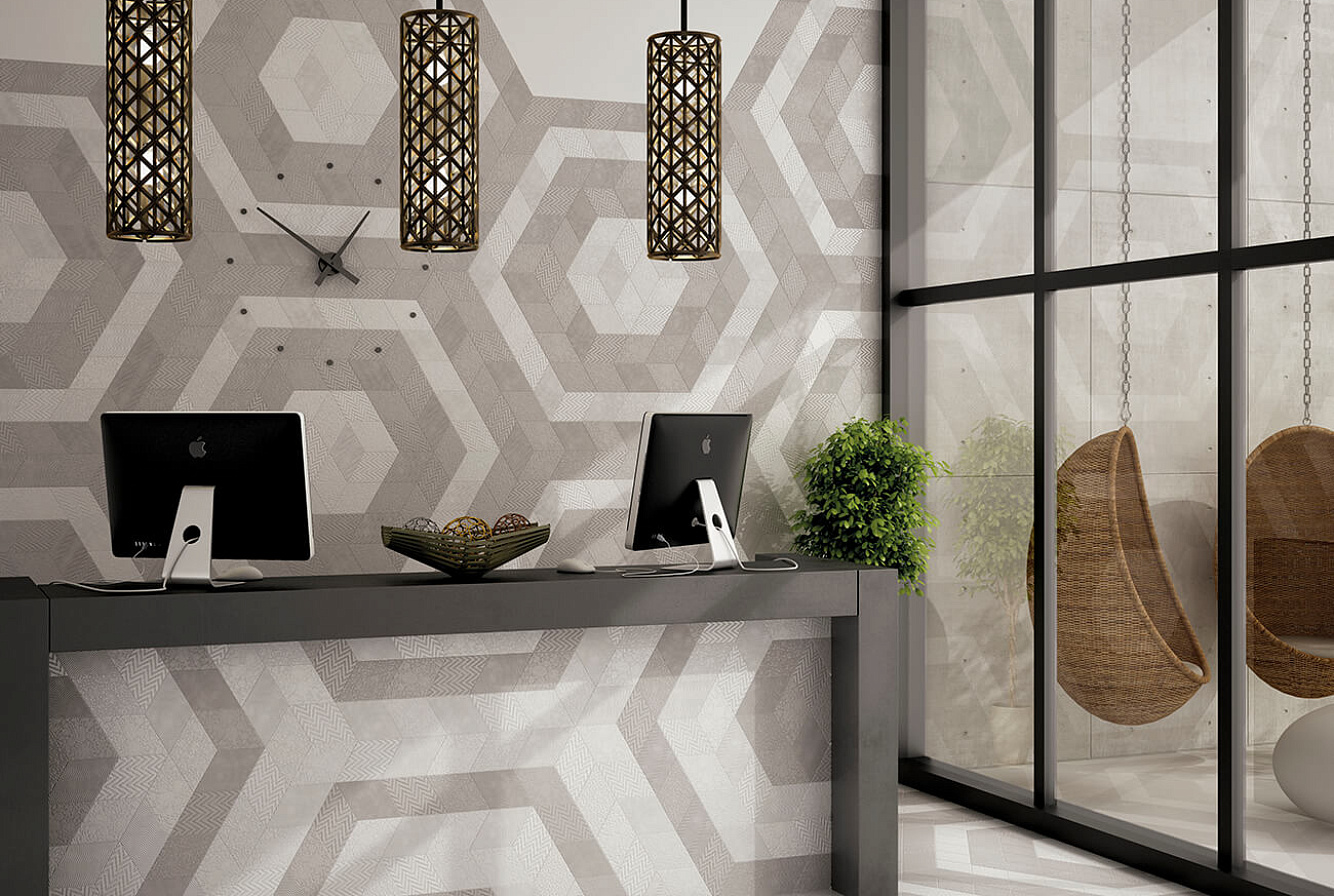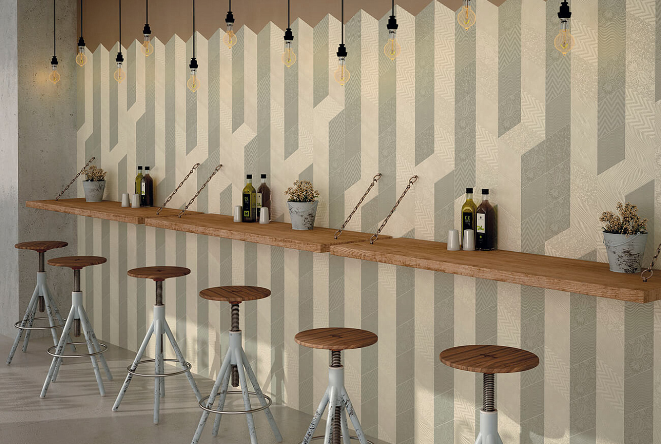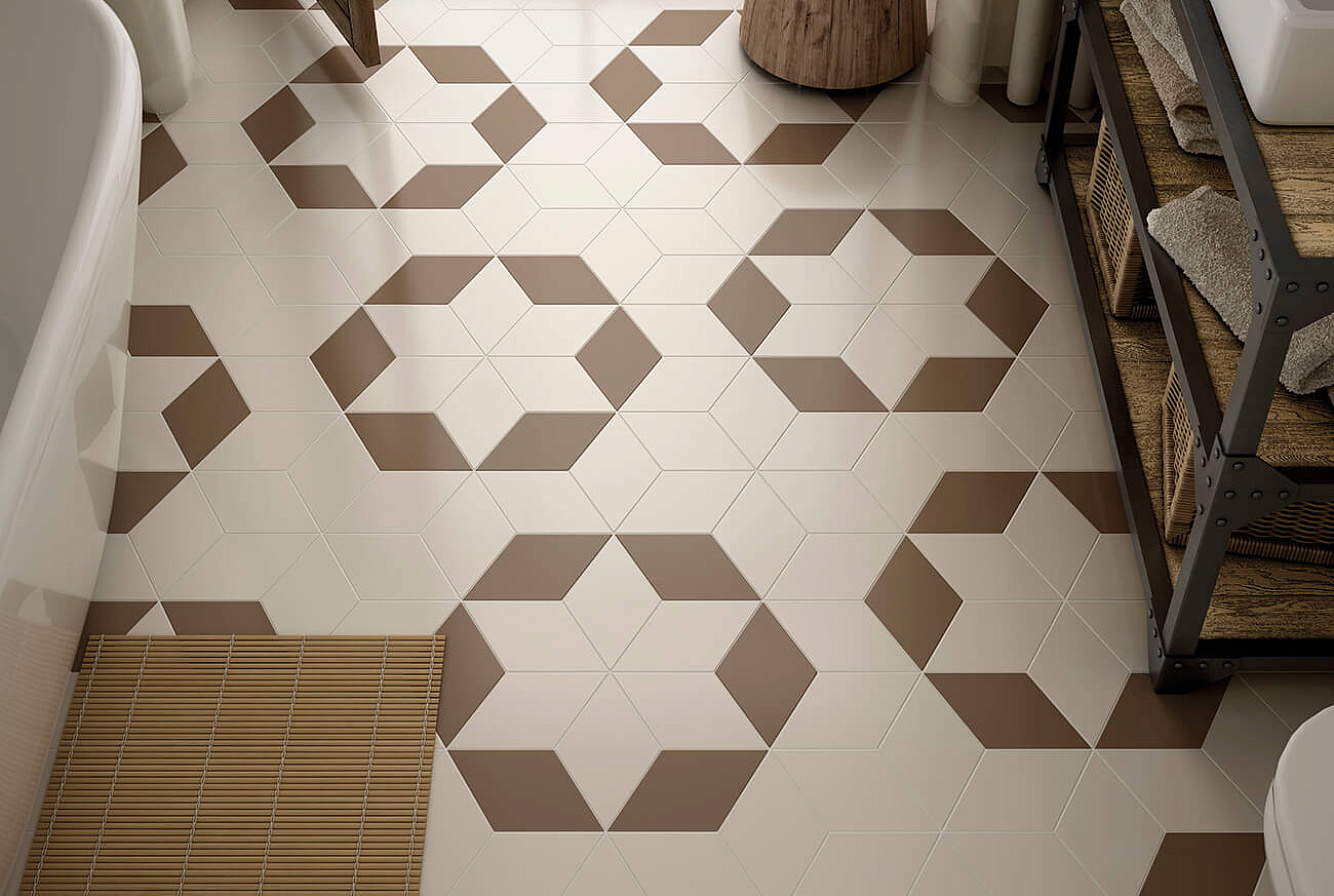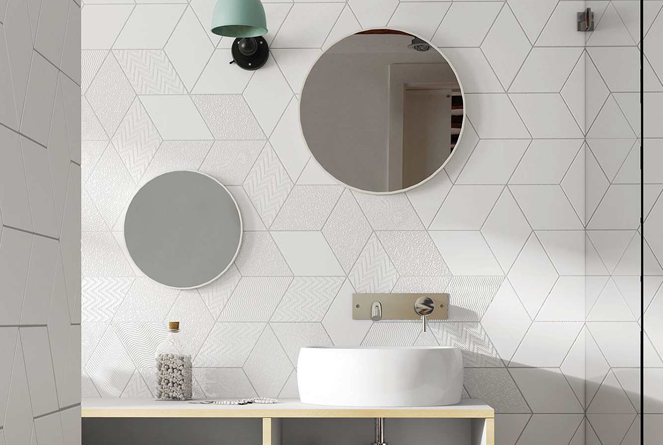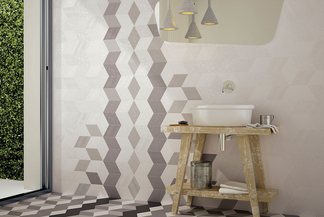Коллекция EQUIPE RHOMBUS /Экипе Ромбус/ представлена комплексным решением для покрытия стен и пола, включающим в себя керамическую плитку для стен. выполненную в форме ромбов, и фигурный керамогранит четырехугольной формы. Натуральные, прекрасно сочетающиеся между собой оттенки и широкий ассортимент декоративных элементов позволяют создавать замысловатые узоры и композиции на стенах и полу.