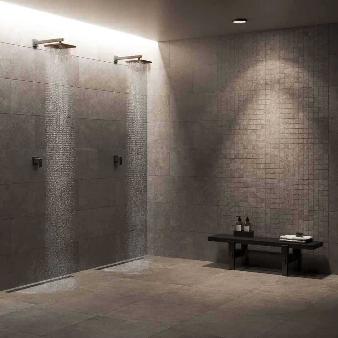 Матовая керамическая плитка 30×60 воспроизводит красоту коччопесто (cocciopesto) — известковой штукатурки, известной со времен Древнего Рима. Чтобы получить на стене эффект гладкого камня с терракотовыми вкраплениями, в известь добавляли измельчённые фрагменты кирпича или черепицы. Покрытия из такого материала, отличающиеся своей водостойкостью и долговечностью, применялись, в том числе, при строительстве бань и акведуков. Сегодня коччопесто ценят за натуральную текстуру и тёплую естественную цветовую гамму.