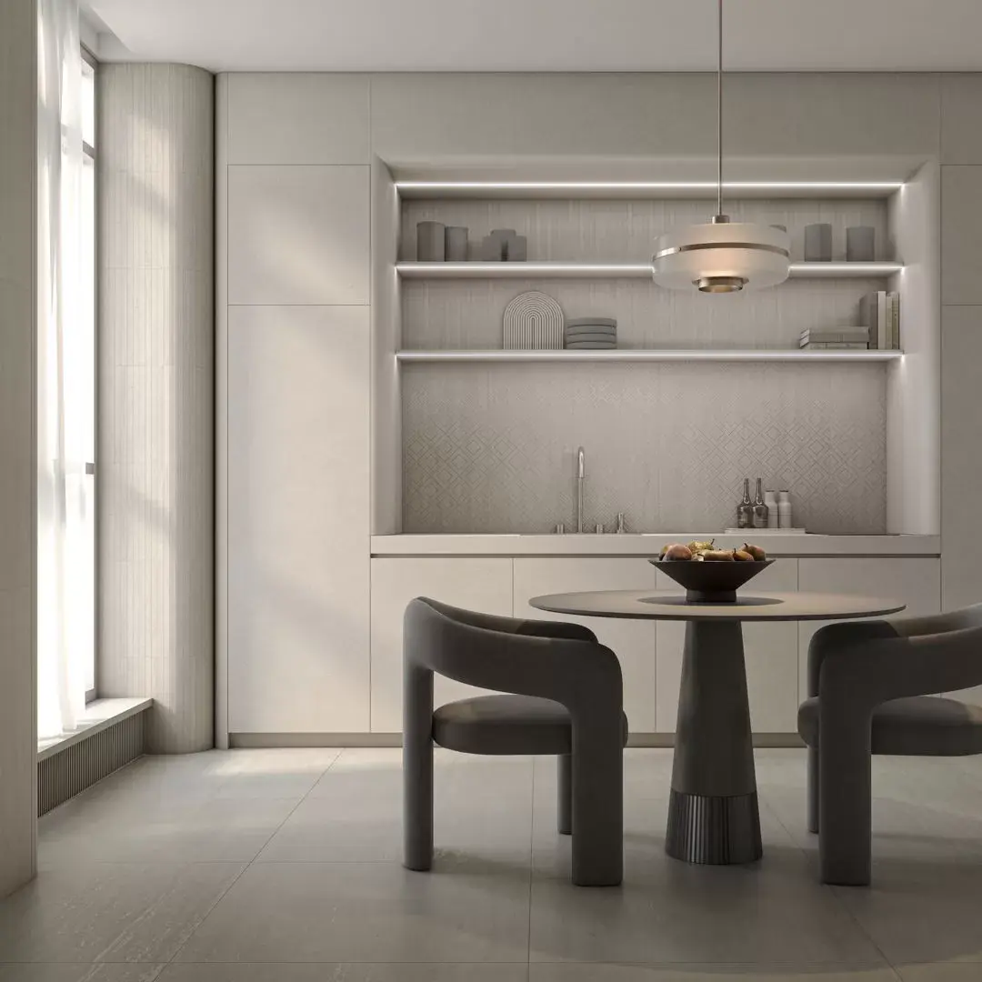 Эта серия — яркий пример воспроизведения натурального травертина или «молодого мрамора», как его иногда называют. В серии представлены наиболее характерные для этого материала цвета: серый, светло-серый и бежевый. Травертин придаст вашему интерьеру естественную красоту и лёгкость.