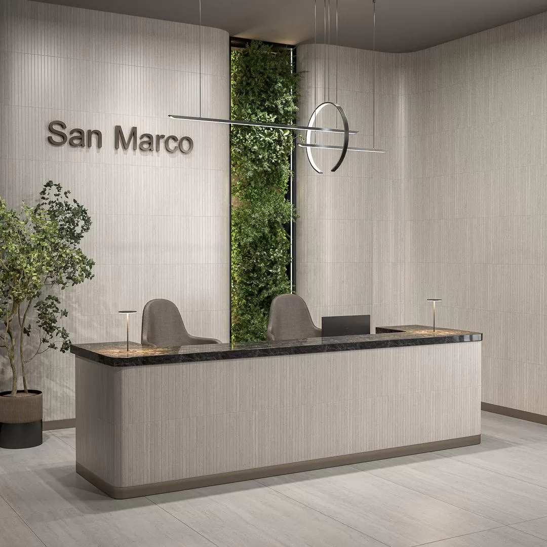 Керамогранит «Сан-Марко» предлагает керамическую версию самого известного строительно-отделочного материала за долгую историю развития архитектуры. Благодаря использованию специальных составов, удалось добиться практически полного совпадения с природным прототипом, причём не только рисунка, но и тактильных ощущений при касании к плитке.