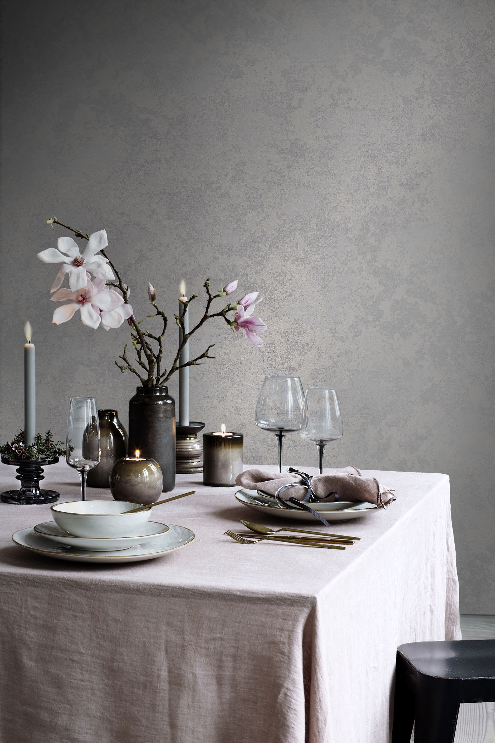 Имитация оштукатуренной стены с легким перламутровым сиянием добавляет интерьеру роскоши и утонченности. Мотив хорошо подходит для гостиных и прихожих, где он может служить основным фоном или акцентной стеной.