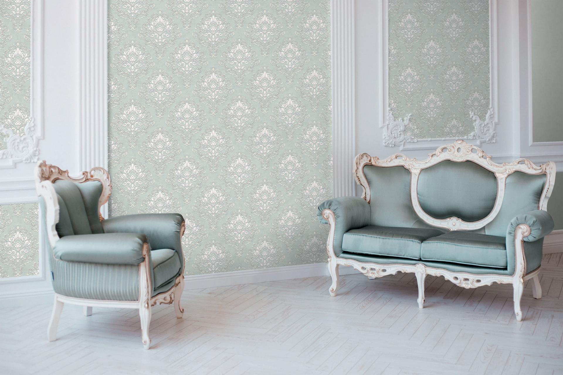 Благородный дамасский узор с изящными изгибами и плавными линиями придает интерьеру классическую элегантность. Рисунок подходит для любых помещений, где требуется создать атмосферу изысканности и традиции.