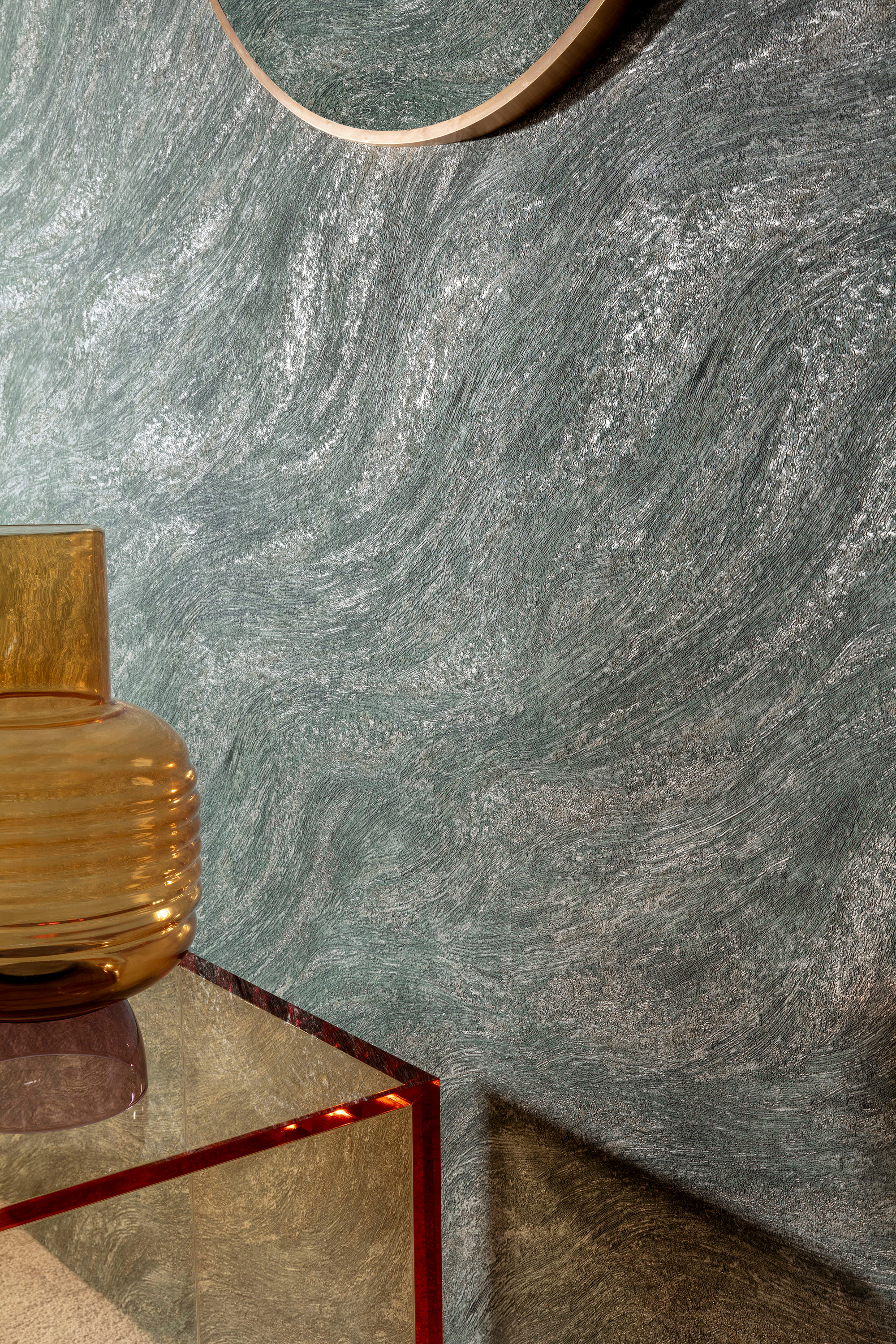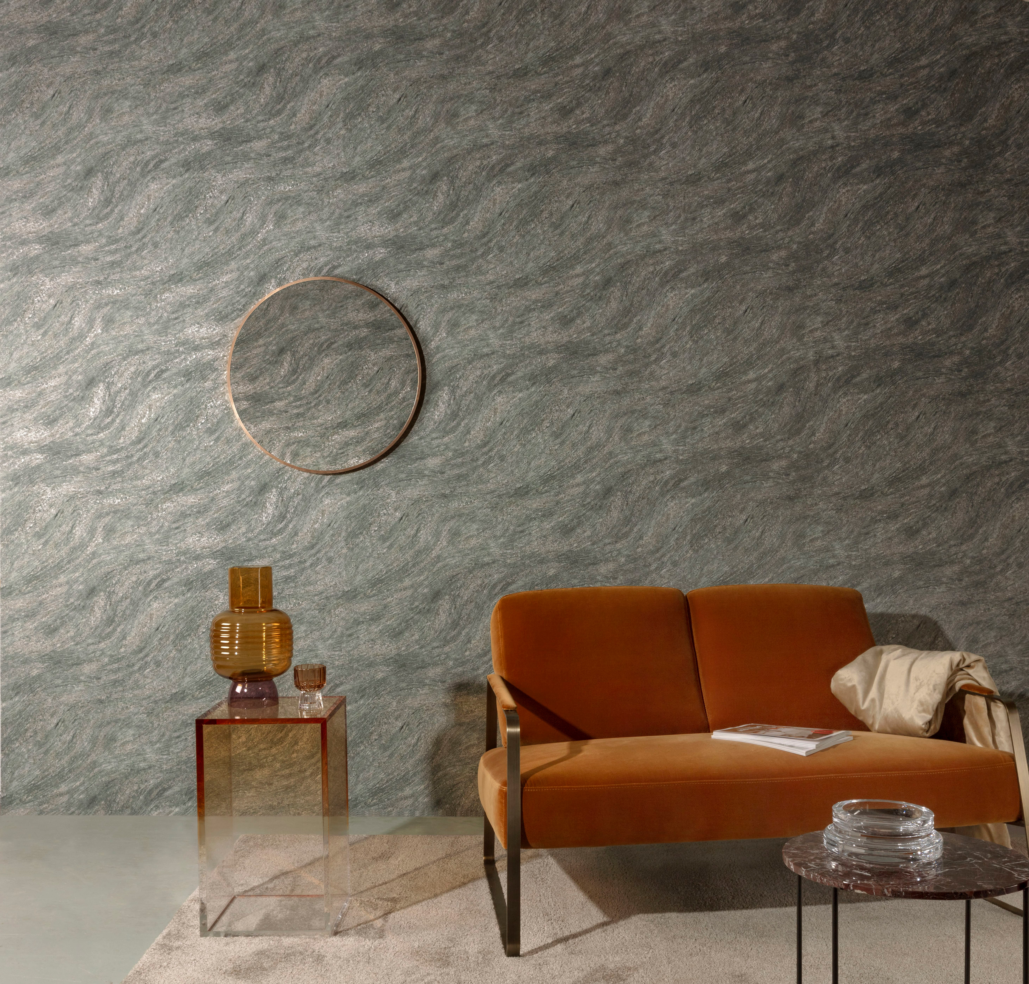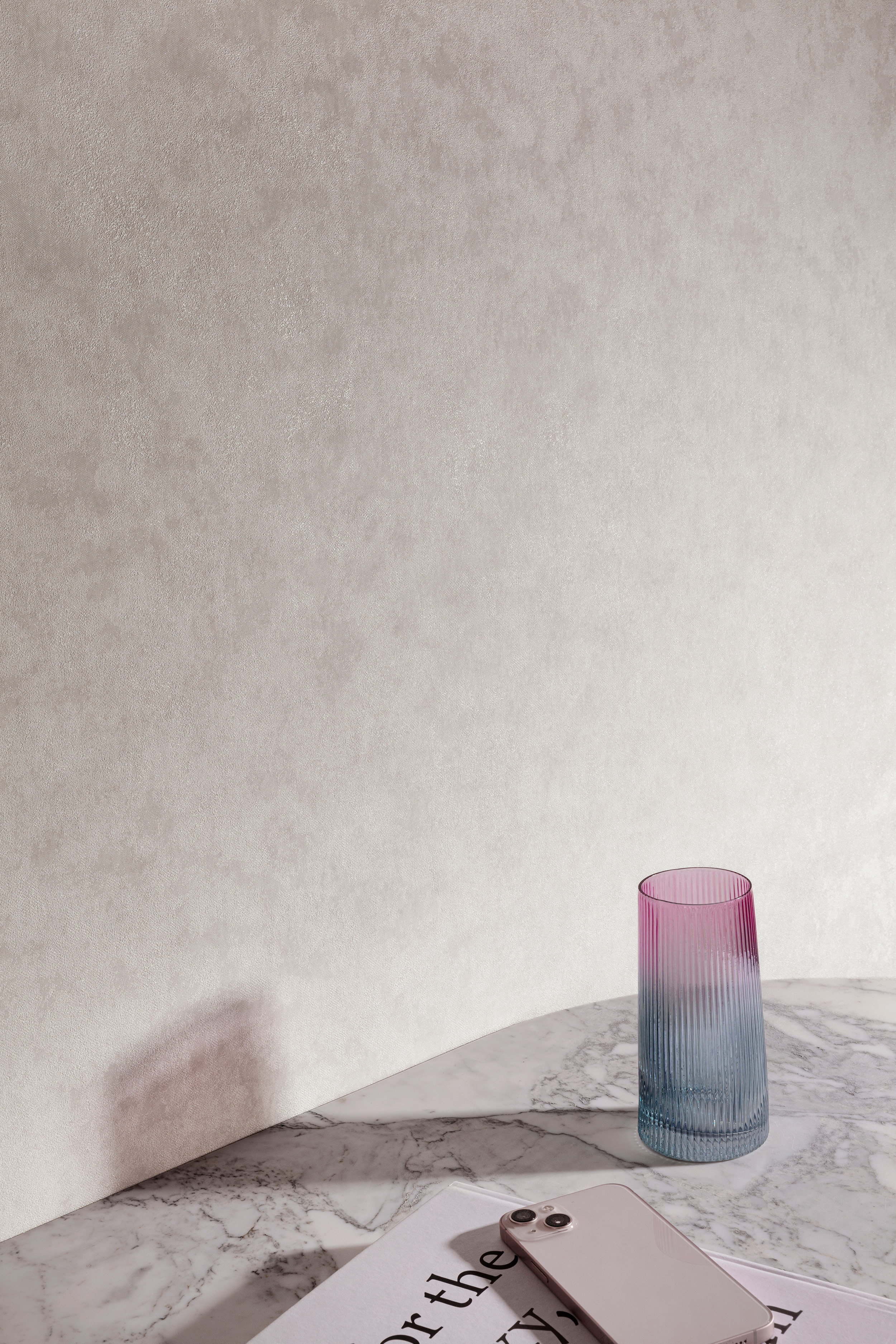 Отсутствие ярко выраженного рисунка делает обои Sentiment универсальными. Их однотонная поверхность с изящными блестящими вкраплениями позволяет создать эффект бесшовного покрытия, визуально расширяя пространство. Они становятся элегантным фоном, который подчеркивает детали интерьера, оставаясь ненавязчивым, но значимым элементом декора.