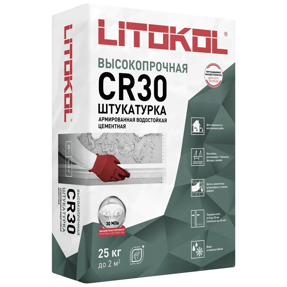 Штукатурка фиброармированная Litokol CR30 для выравнивания стен, полов, потолков L0478360002 25 кг