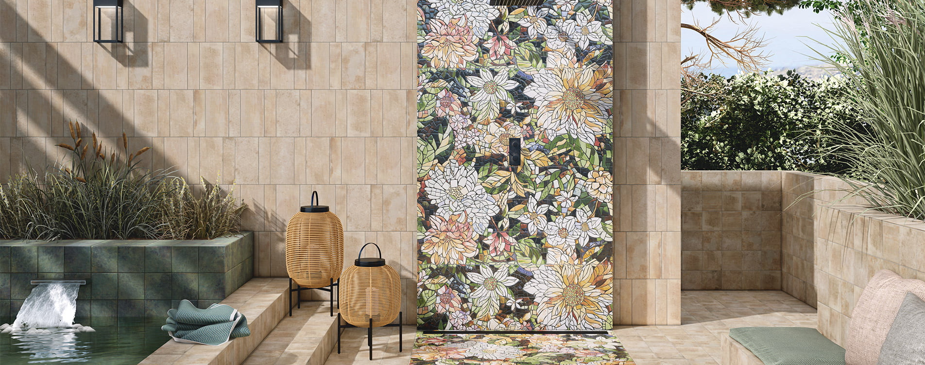Состав коллекции: Mural Sinfonia — панно из стыкующихся плит 120x120 и Decor Sinfonia микс плит 20x20.