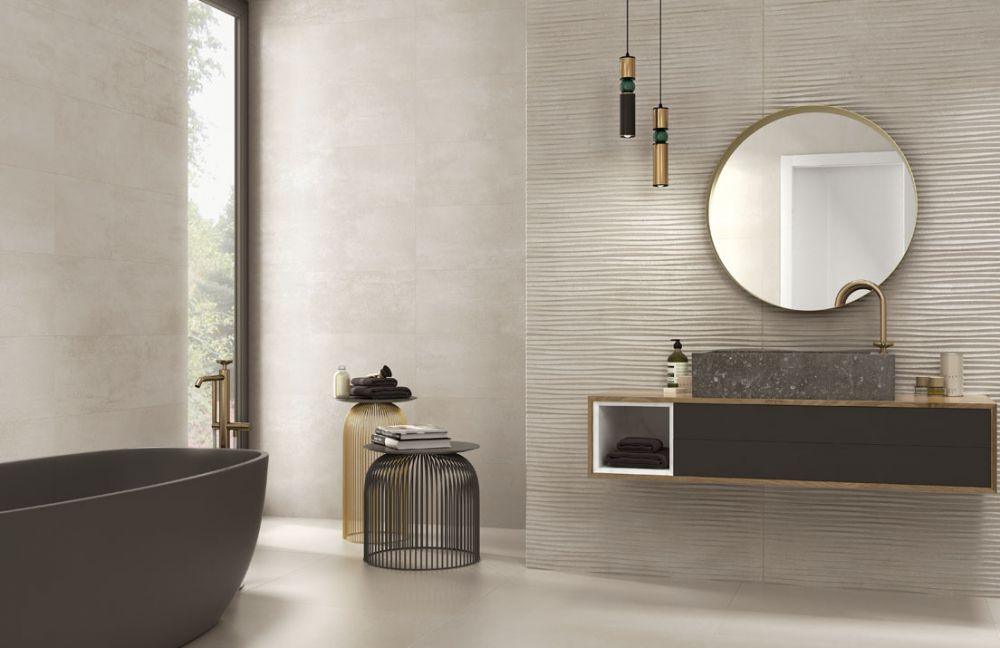 Испанская коллекция Emigres Slab включает настенную плитку формата 30х90 см, с фактурой под бетон, выполненную в трех оттенках: белом, бежевом и черном. Базовые модули дополнены структурированными, с линейным, слегка волнистым рельефом. Также в коллекцию входит координированный по цвету напольный керамогранит, выполненный в двух форматах, 60х60 и 60х120 см, и двух типах поверхности, лаппатированной и глянцевой. Все элементы коллекции ректифицированы.