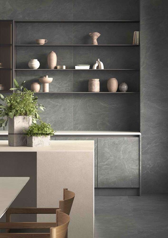 С необычайной простотой природа предлагает свою самую мощную эстетическую красоту в коллекции, которая охватывает противоположности: утонченную, но поразительную, сдержанную, но пленительную. Slate отдает дань уважения великолепию природных материалов — живых и достойных — и их экзистенциальному диалогу со светом, который наполняет пространства. Внутренняя индивидуальность натурального сланца точно передается в керамической поверхности, раскрывая свои самые аутентичные черты, которые являются изысканными и технологически продвинутыми, создавая эффектный, но минималистский стиль. Это идеальное сочетание скандинавской минималистской элегантности и поиска внутреннего благополучия, берущего свое начало в японском искусстве. Идеально сбалансированный между чистотой и элегантностью, Slate занимает центральное место, раскрывая истинную сущность света, шепот роскоши, где изысканная простота становится жизненной философией, посвященной благополучию.