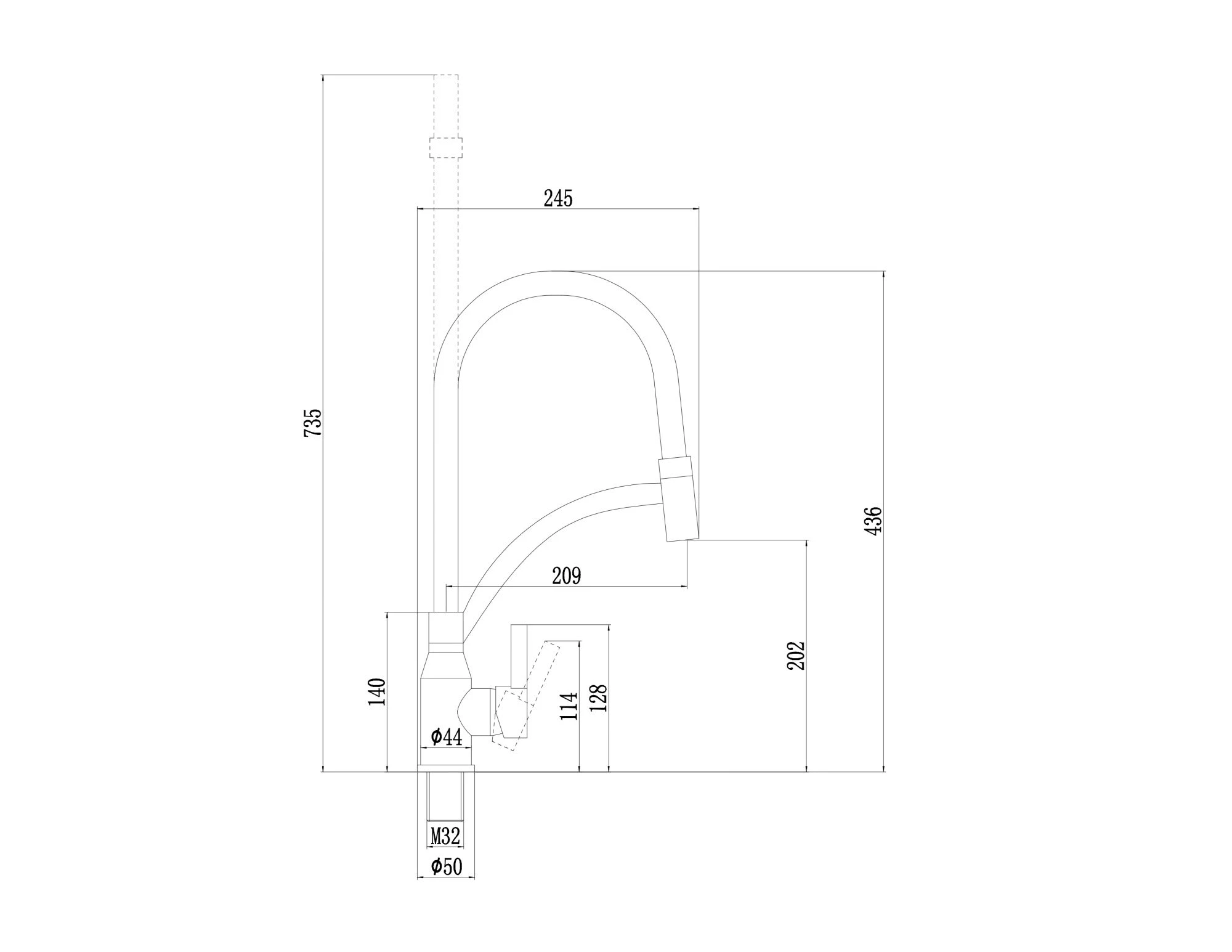 - Длина излива 210 мм