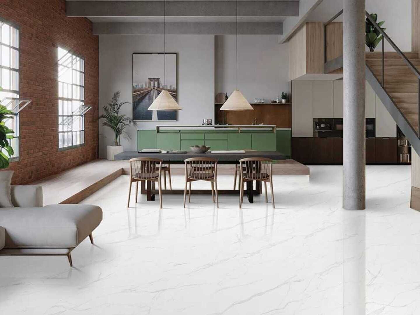 Новая коллекция керамогранита Statuario Rock с полированной поверхностью. Новая коллекция керамогранита Gravita коллекции Statuario Rock под белый мрамор с коричневыми прожилками большого формата 80х160 см и полированной поверхностью. Эта коллекция отражает современное стремление создавать плитку с естественными, натуральными текстурами под природный камень, дерево или металл. Поверхность плитки имитирует мрамор настолько качественно, что отличить от оригинала просто невозможно. Светлые, спокойные тона керамогранита позволяют вписать его в любую функциональную зону помещения, от прихожей, и до туалета с ванной. Большой формат и обработанные края позволяют создавать бесшовные стеновые панели от пола до потолка. Но стоит помнить, что особенно эффектно это смотрится в больших помещениях. Мрамор отлично вписывается в любой дизайн интерьеров – от классического, до современного, например, скандинавского или эко. Он хорошо подходит для создания цветовых акцентов отдельных зон. Керамогранит Statuario Rock легко сочетается с другими материалами – натуральным камнем, например ониксом, деревом, бетоном, металлическими поверхностями, кожей и стеклом. Светлые, полированные текстуры визуально увеличивают объем помещения и придают ему благородный, аристократический вид.