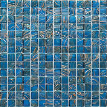 Стеклянная мозаика Rose Mosaic Gold Star сетка 1x1 глянцевая голубая G62 31,8х31,8 см