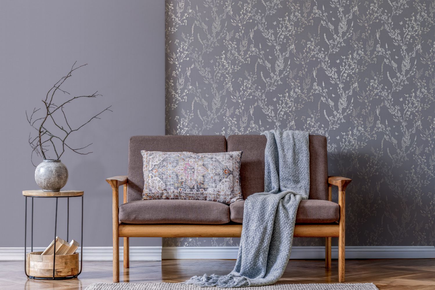 Элегантность и современность мотиву придает драгоценный декор. Рисунок словно вышит на полотне обоев серебряными и золотыми нитями, добавляя нотку роскоши и подчеркивая изысканность дизайна.
