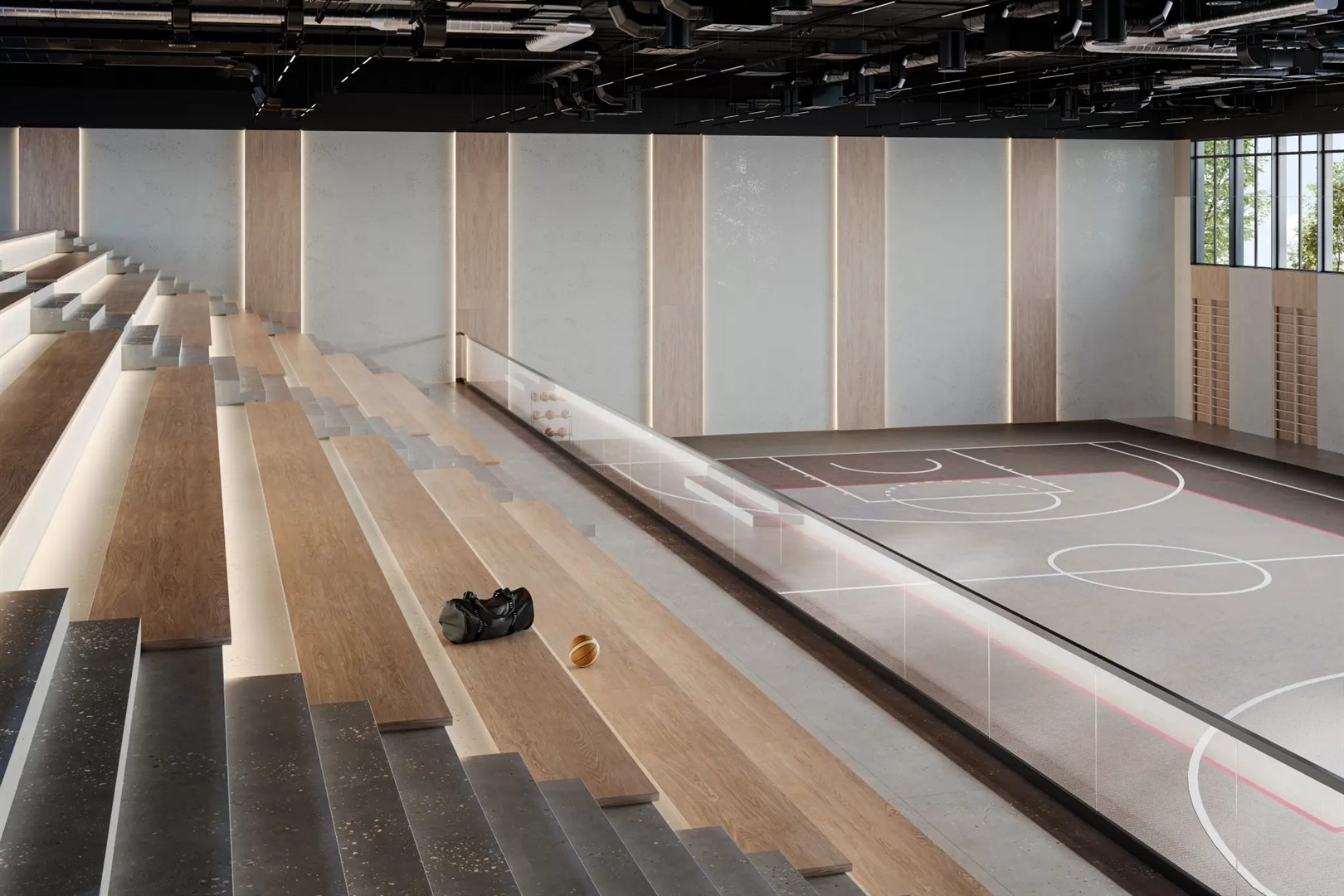 Керамический гранит «Даймондс». Серия керамического гранита с дизайном под бетон представляет собой сочетание монохромной матовой поверхности и мелких блестящих вкраплений, которые переливаются на свету, создавая эффект «звёздного неба». Это делает материал идеальным для акцентирования внимания в современном интерьере. Керамогранит для стен размером 119,5×320 дополняется новым форматом 119,5×119,5 толщиной 11 мм, который подходит для напольного покрытия. Материал доступен в трёх цветах, включая серый.