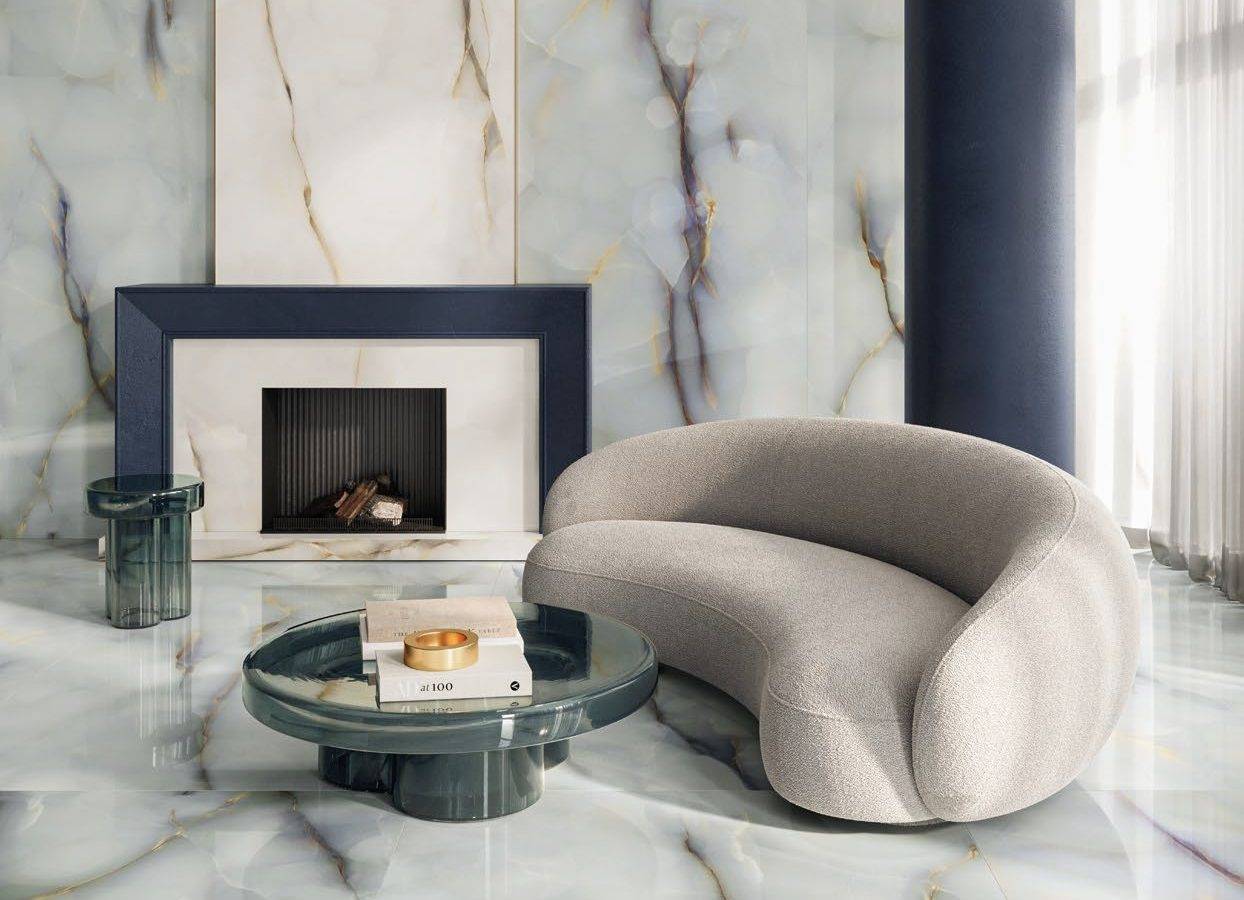 Каждый оттенок в линейке — от классического Белого до умиротворяющего Голубого — великолепно передает игру света и тени, характерную для полудрагоценного камня. Переливы и перламутровые прожилки на полированной поверхности создают впечатление настоящего художественного полотна.