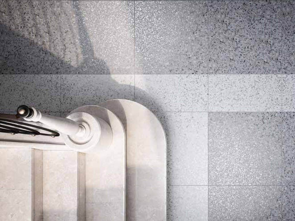 Это лучшая имитация технологии напольных покрытий “TERRAZZO”, выполненная в керамограните. При относительно невысокой для высококачественного итальянского керамогранита цене эта коллекция демонстрирует высочайшую детализацию структуры поверхности. Каждый изображённый на поверхности камушек выполнен слегка впалым. За счёт этого достигается 3D-эффект восприятия.