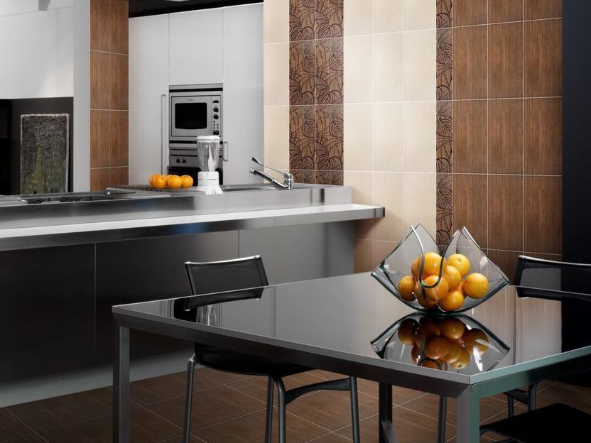 Для облицовки кухни и ванной вам отлично подойдёт керамическая плитка Tisa Атем украинского производства. Она выполнена в формате 25х45 см и представлена керамикой коричневого и светло-бежевого цвета. Монохромная фоновая плитка имеет слабовыраженную древесную структуру, а декоративные элементы – бордюры и декоры имеют фактурный рисунок в виде листвы. Напольная керамика формата 45х45 см также, как и облицовочный кафель, имеет матовую поверхность. Керамическая плитка Tisa Атем прекрасно подойдет всем любителям современного дизайна в интерьере, часто именуемого как hi-tech.