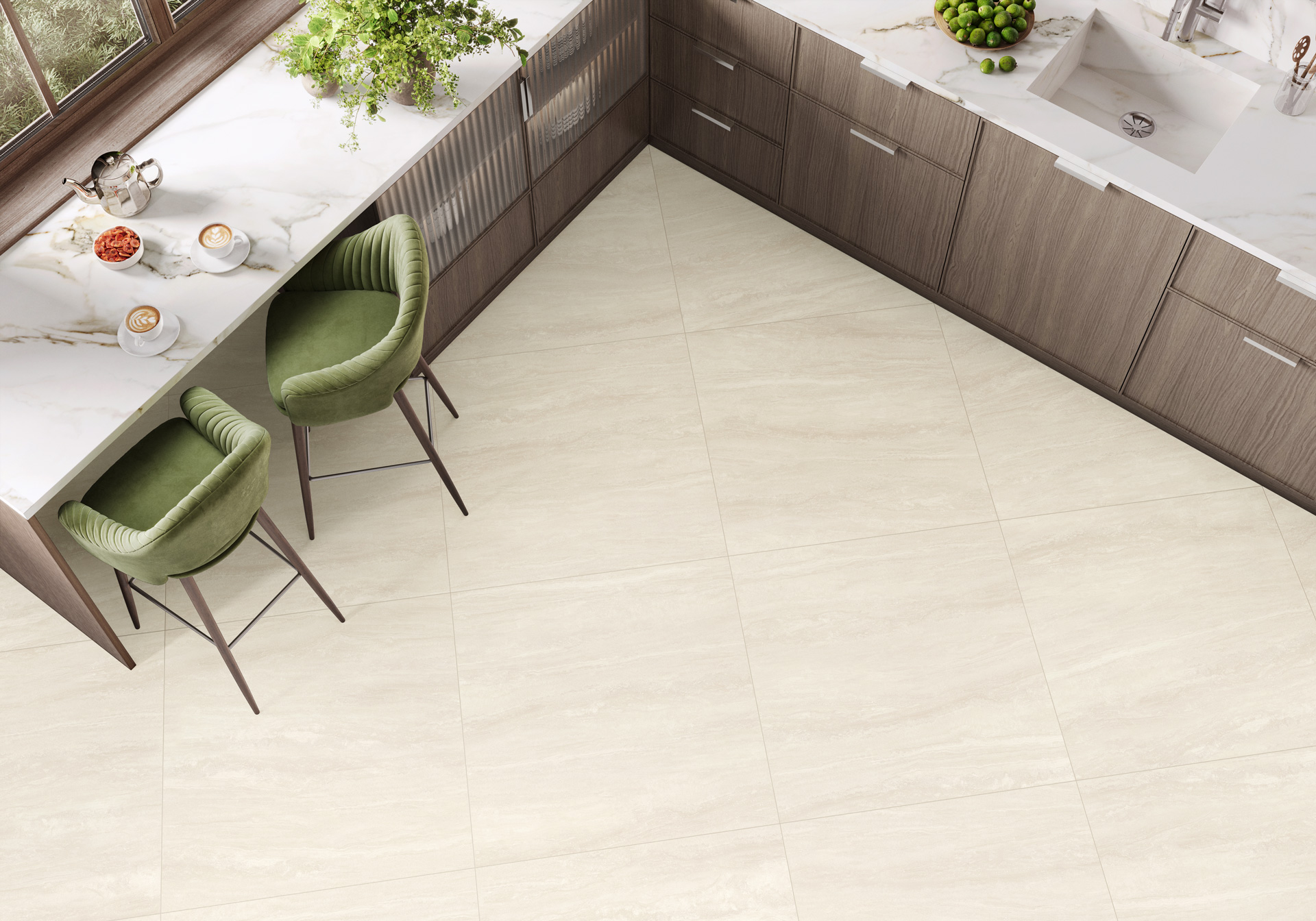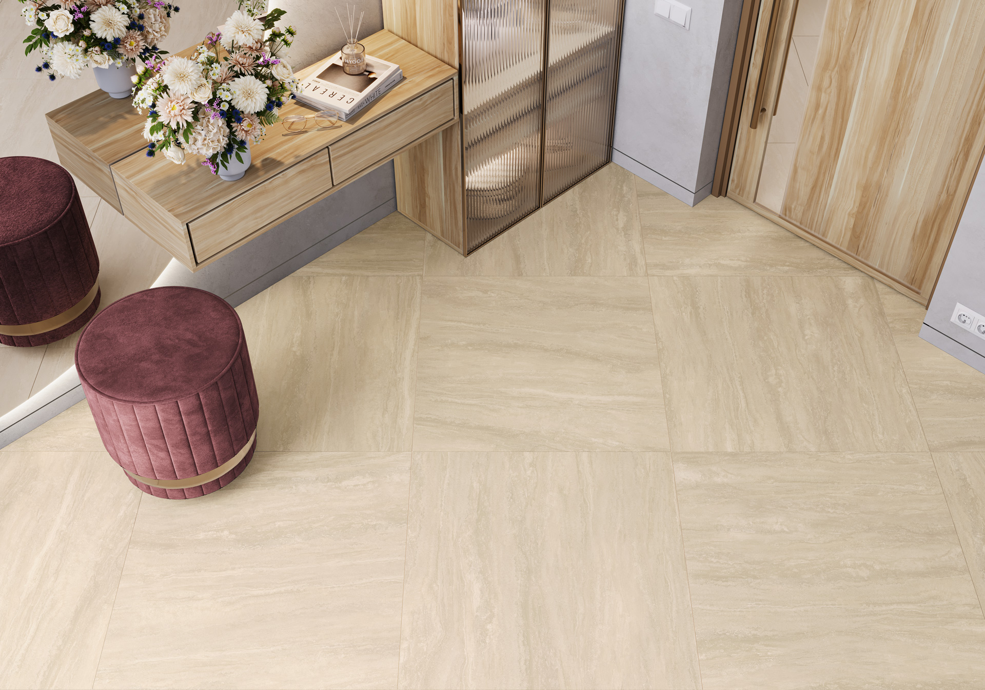 Нежные оттенки бежевого травертина с деликатным ненавязчивым узором природного камня создадут уютное обволакивающее пространство. Коллекция названа в честь итальянской местности Тиволи, где добывают этот солнечный камень. Такой спокойный дизайн на пике моды в отделке современного пространства. Формат 600х1200 мм произведен на рельефе.
