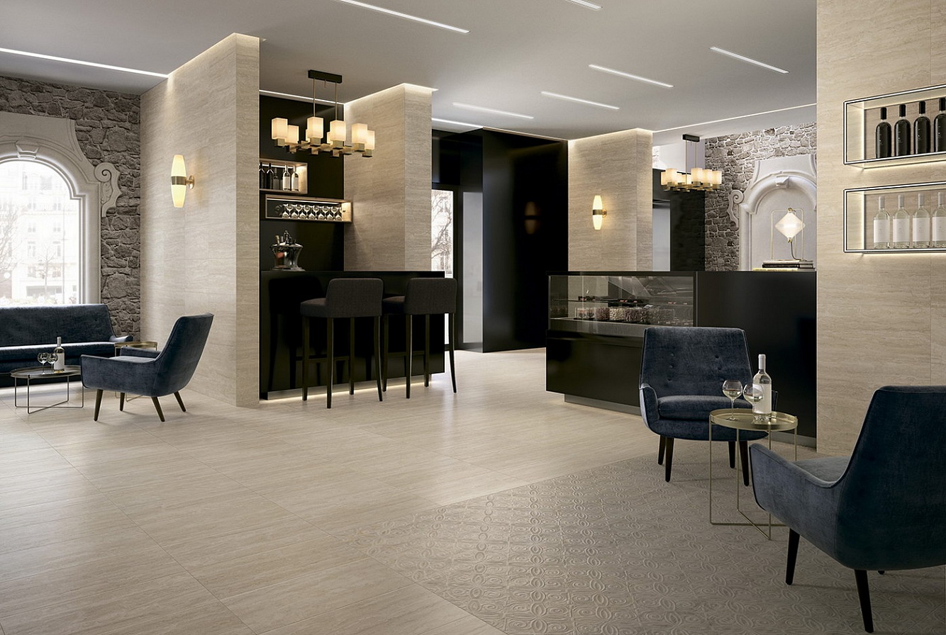 Удачное решение для ванной, для туалета, для комнаты, для кухни, для прихожей, для общественных помещений, для фартука, для террасы, для фасада. Реализуется со стилизацией под камень, травертин, под сланец. Керамогранит Травертино Беидж Гресант сочетает в себе традиционно отменное качество, неповторимость, долговечность, дизайнерский метод в производстве образцов керамики. Хорошо впишется в современный стиль оформления помещения.