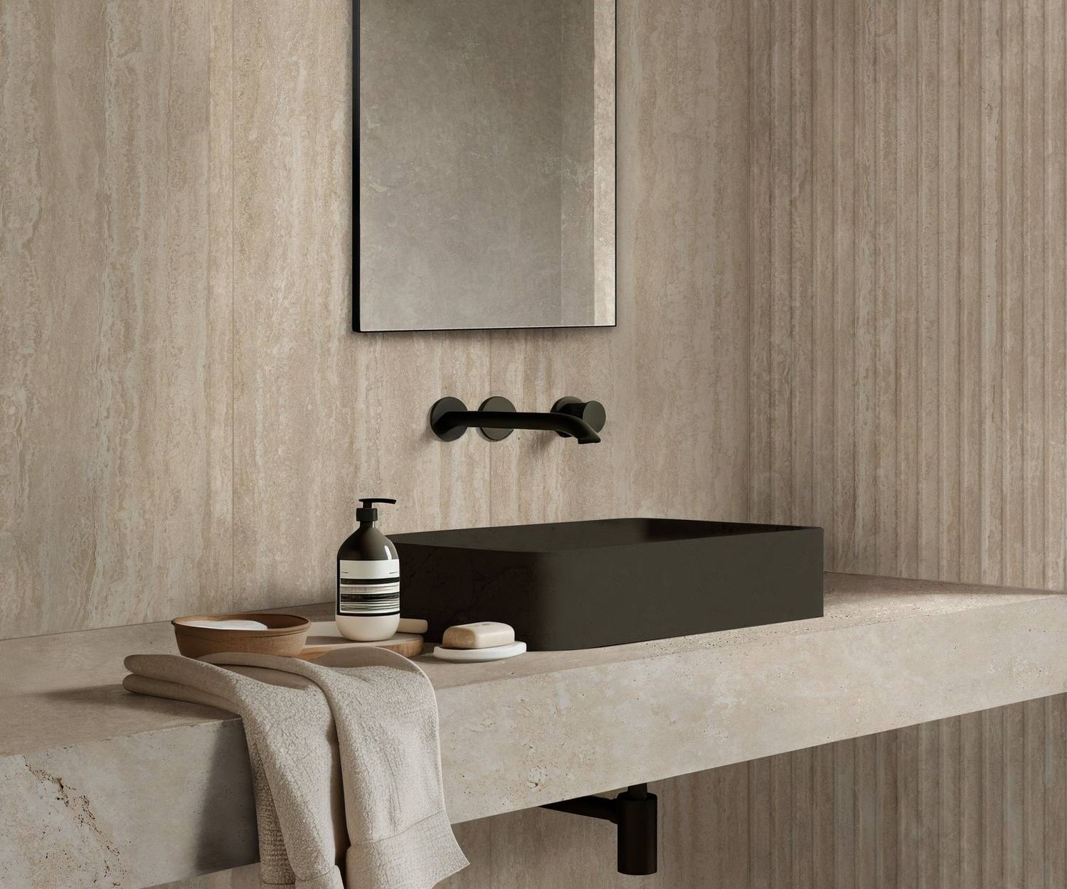 Коллекция облицовочных плит Ragno Travertino Wall 40x120 см мастерски передает природную красоту травертина с его характерными узорами Cross и Vein, сохраняя аутентичную текстуру камня. Идеально гармонируя с базовыми элементами Realstone Travertino, она создает целостные ансамбли, где каждая деталь подчеркивает благородство натурального материала. Мягкая цветовая палитра и изысканные варианты отделки делают Travertino Wall универсальным решением для тех, кто ценит сдержанную элегантность и стремится создать атмосферу уюта.