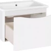 Тумба под раковину в ванную RUNO тоскана (подвесная) - выполнена в ультрасовременном дизайне в классическом белом цвете. Тумба под раковину отличается изысканным дизайном, скруглённые углы тумбы, древесная текстура фасада, врезная ручка – придают мебели необычный и незабываемый внешний вид. Тумба в ванную оснащена выдвижным ящиком на шариковых направляющих, с системой плавного закрывания. Тумба под раковину тоскана гармонично впишется в любой интерьер ванной комнаты. Мебель для ванной комнаты RUNO - красота и практичность в мелочах!