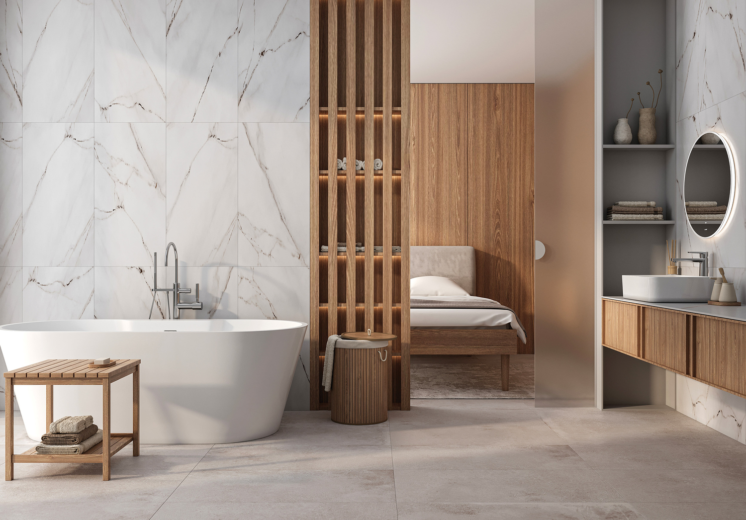 Урбанистичную коллекцию Ultra можно использовать как базовую плитку для заполнения больших пространств. Серый и светло-серый материал под камень с матовой поверхностью красив и практичен. Для того чтобы он выглядел идеально, не нужно прикладывать больших усилий. Керамогранит с такой текстурой уместен в любых интерьерах, и классических, и технологичных. Базовая плитка станет идеальной парой и мрамору, и дереву, и камню. Она усилит их цвета и выгодно подчеркнёт акценты в интерьере.