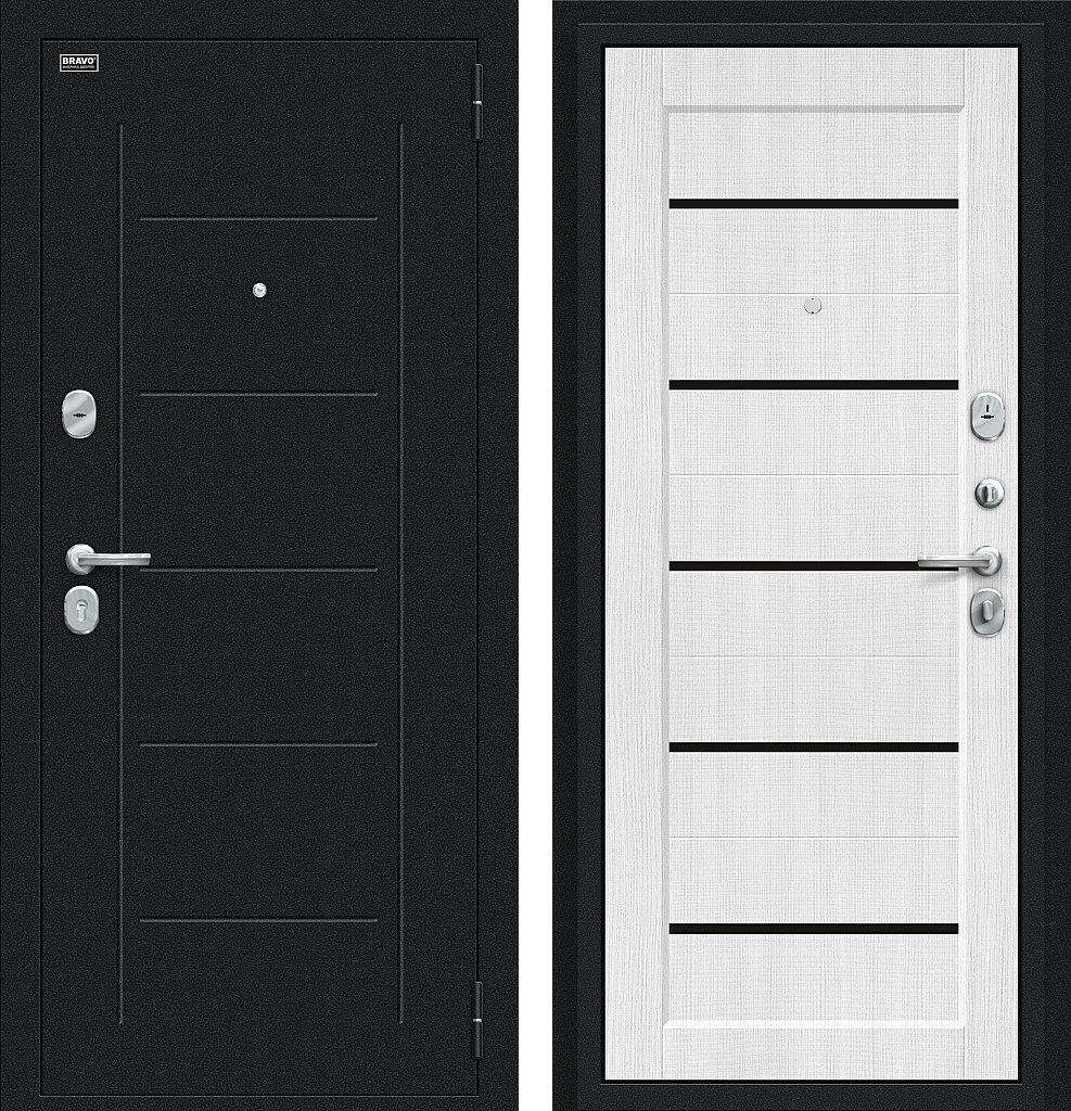 Входная дверь Bravo Борн 205x96 Букле черное/Snow Melinga левое открывание