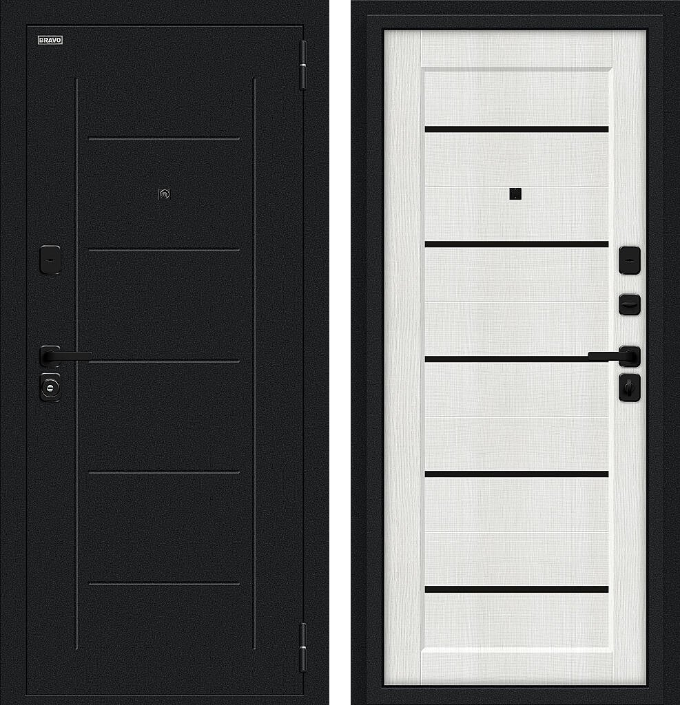 Входная дверь Bravo Борн/SBlack 205x96 Букле черное/Bianco Melinga правое открывание