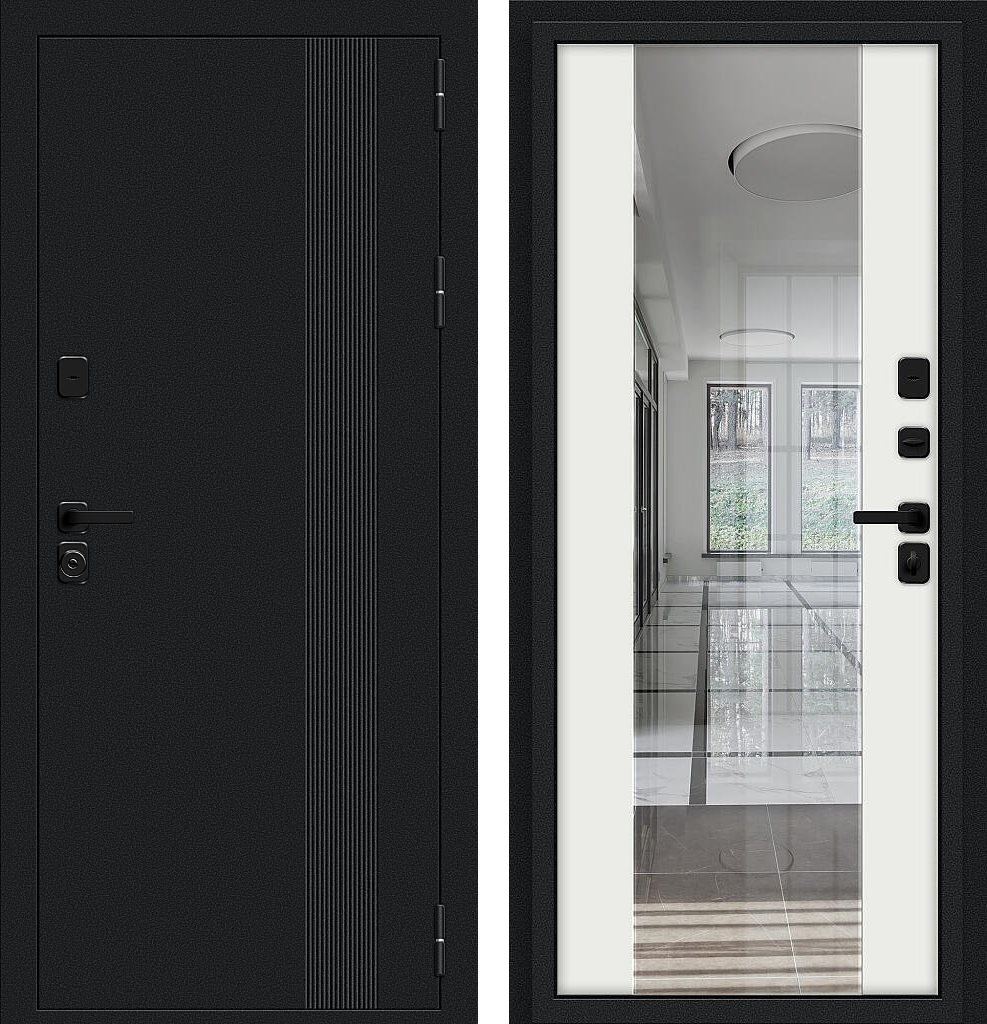 Входная дверь Bravo Эйр 205x96 Букле черное/White Shell правое открывание